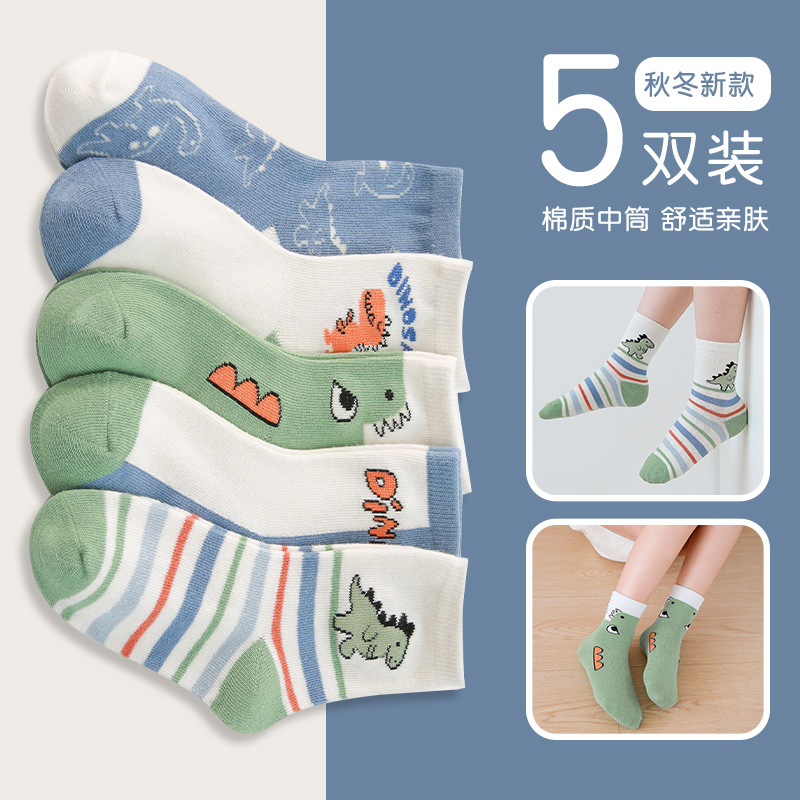 儿童袜子男童春秋款棉质秋冬季宝宝女孩中筒袜大童学生宝宝卡通袜