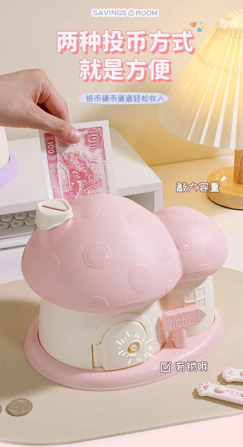 网红蘑菇屋存钱罐DIY可爱小摆件儿童女孩子房间创意桌面卧室布置