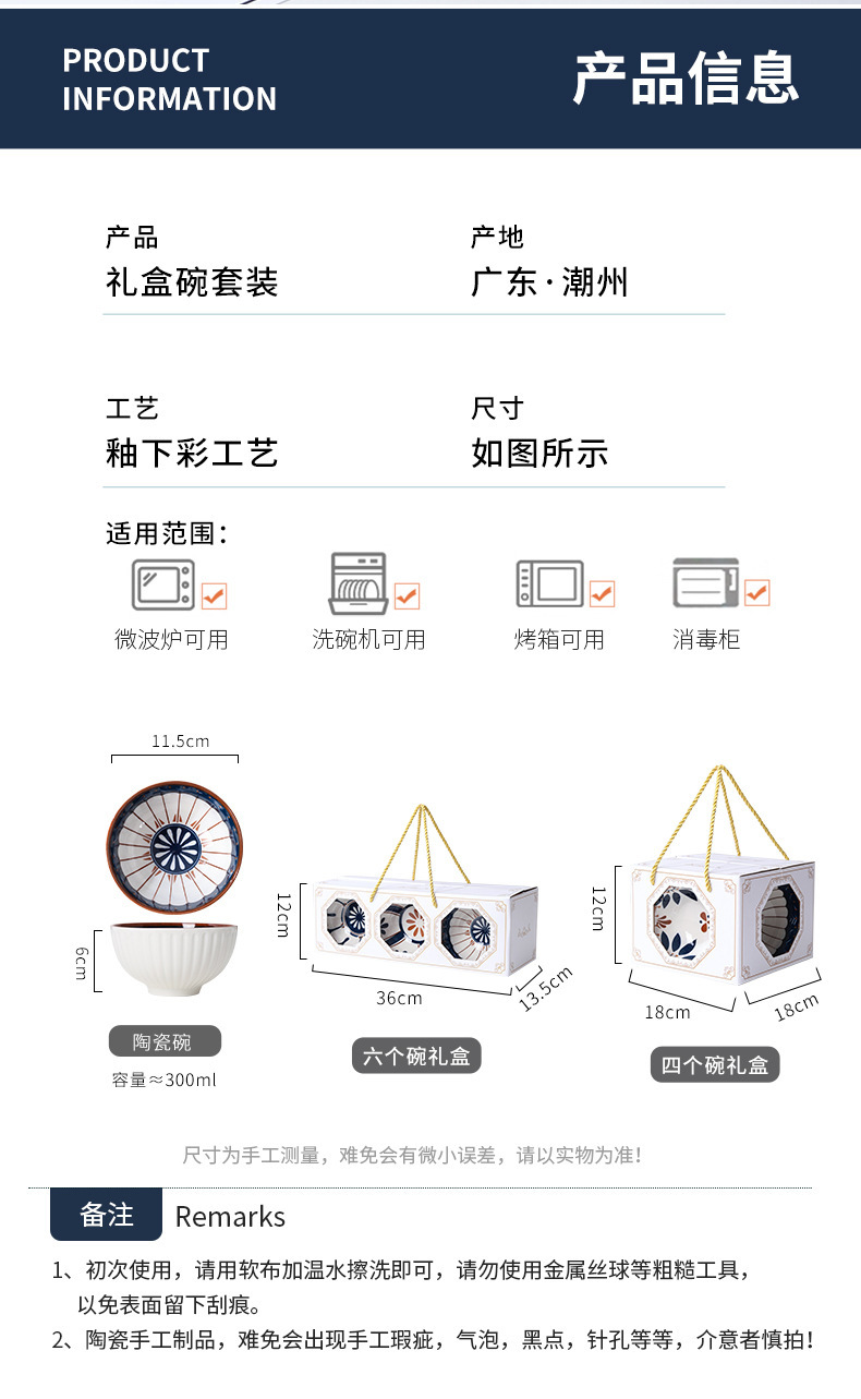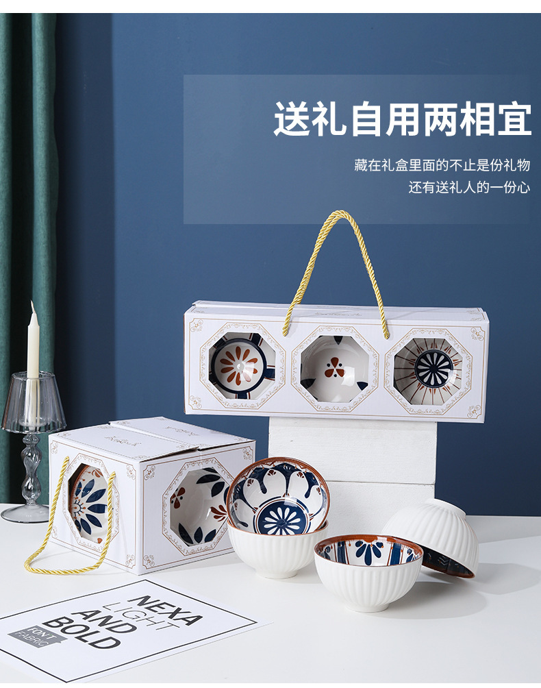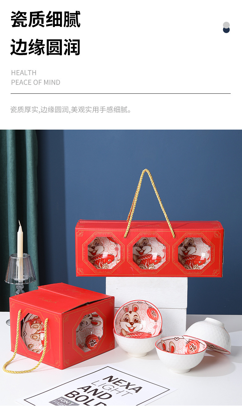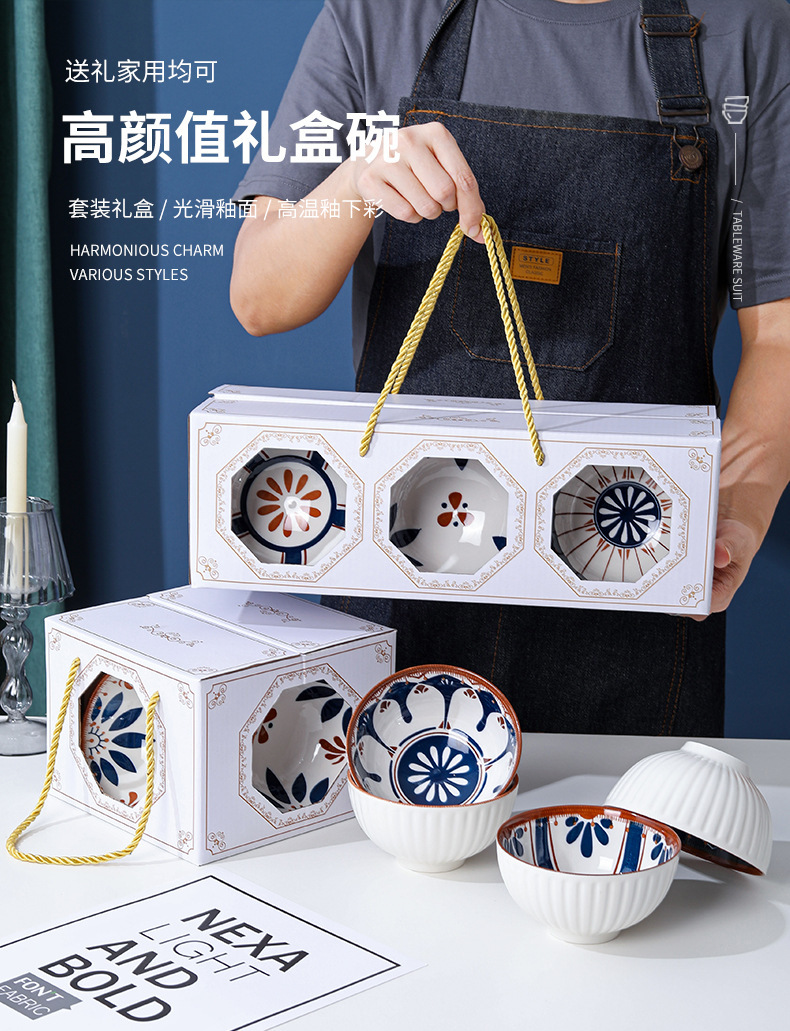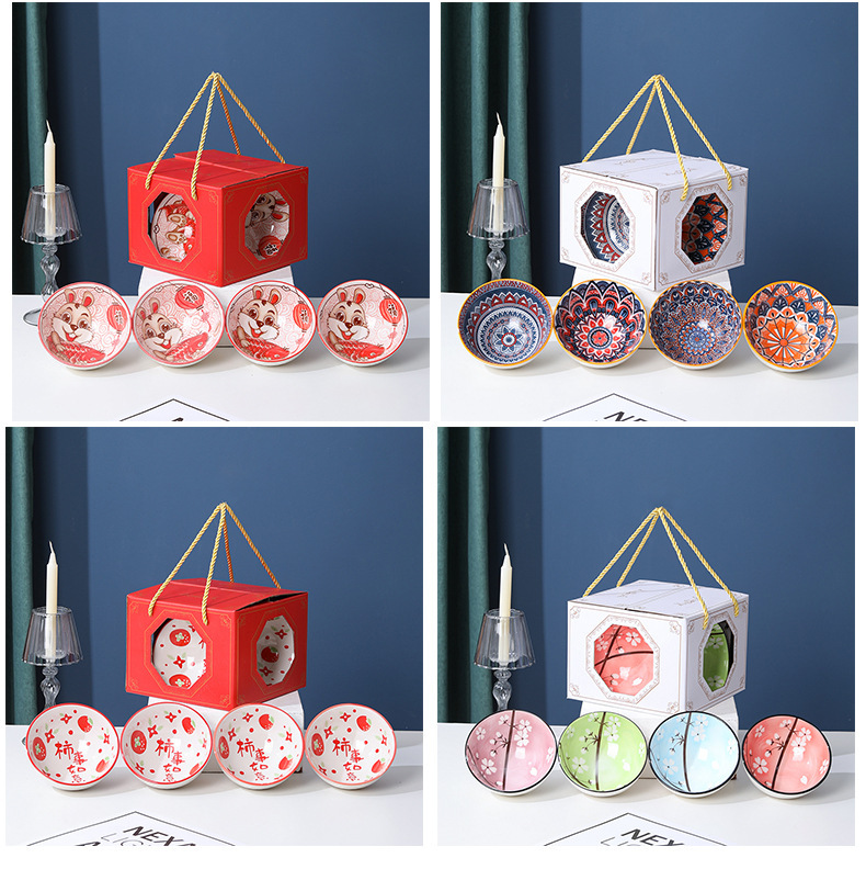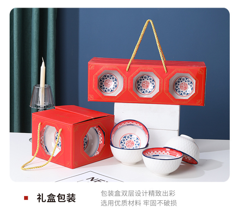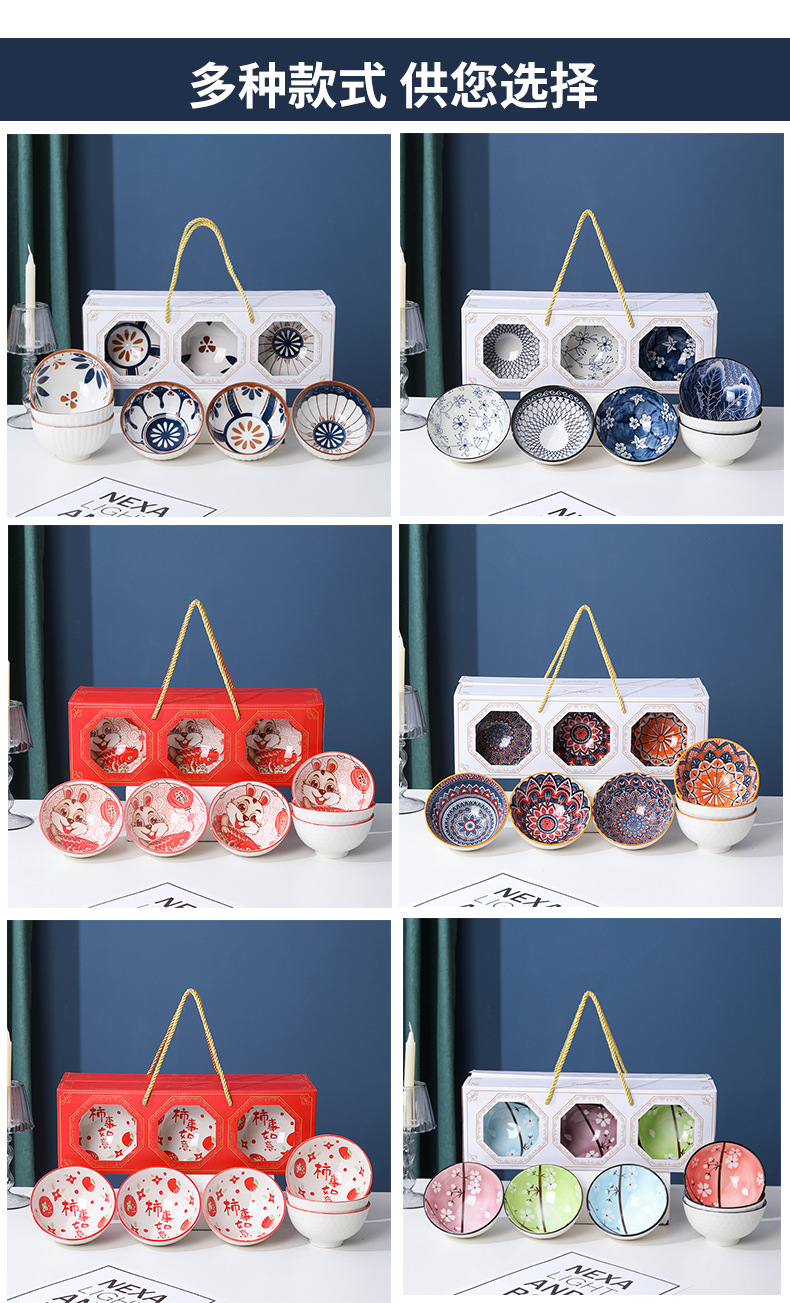新款陶瓷碗餐具开门红礼盒套装龙年日式碗套装釉下彩碗礼盒装