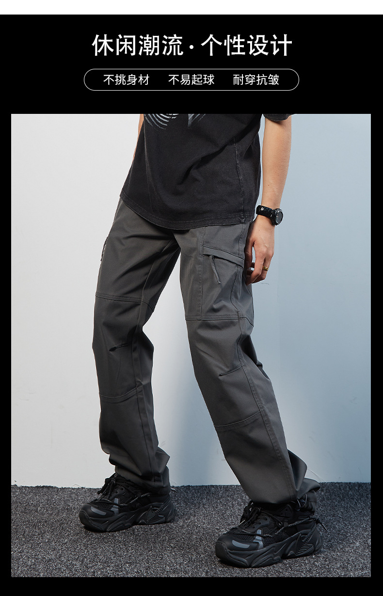 美式vibe机能黑色工装裤男式宽松直筒束脚裤休闲裤潮牌阔腿长裤