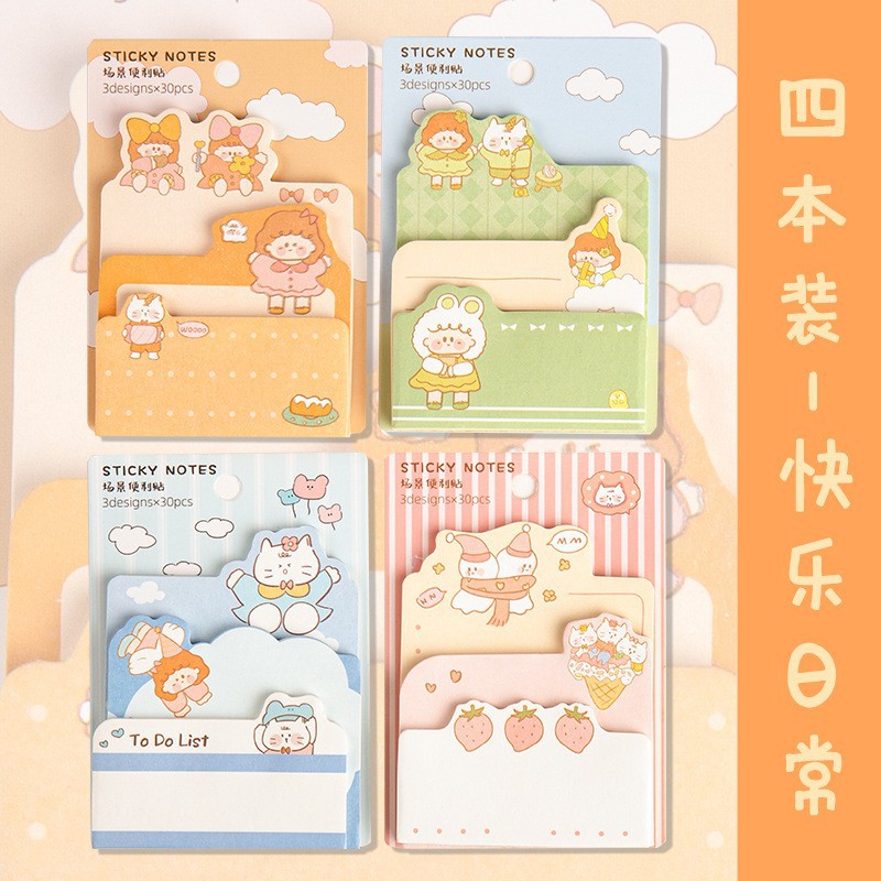 三层共90张便利贴卡通组合便签本可爱手帐留言便签纸便利贴便签贴