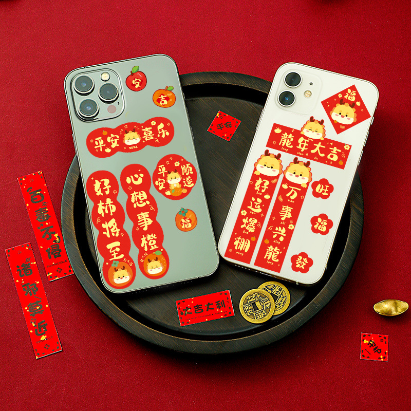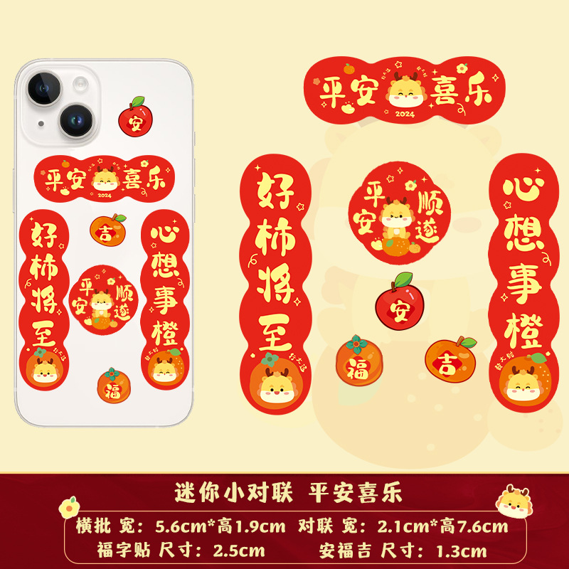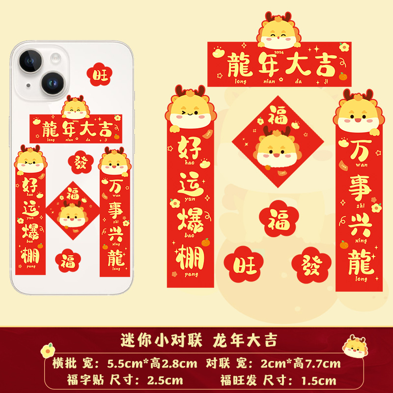 2024龙年春节装饰对联趣味迷你小对联手机贴纸可爱装饰贴纸平板贴