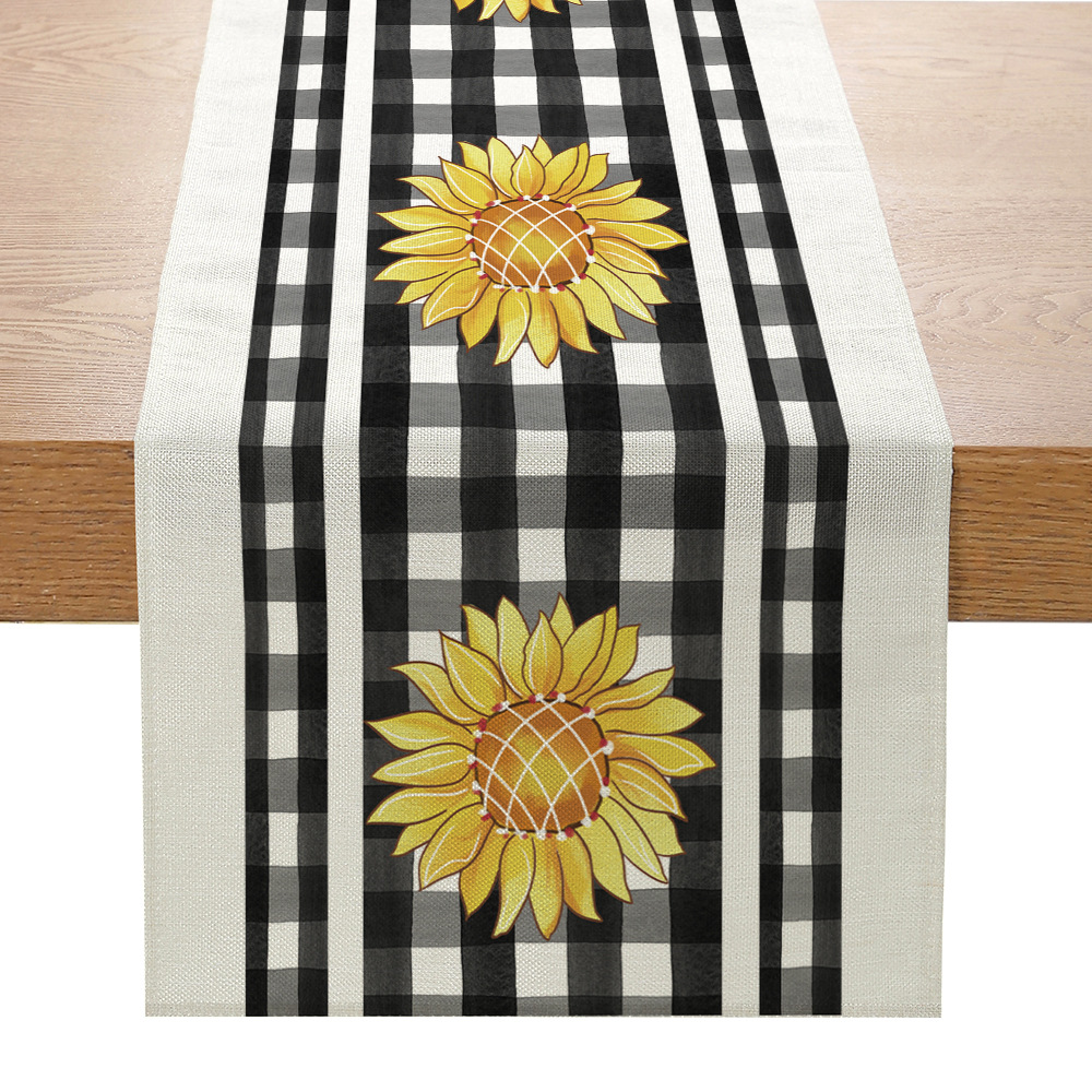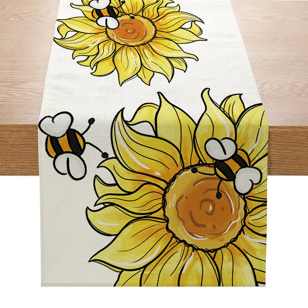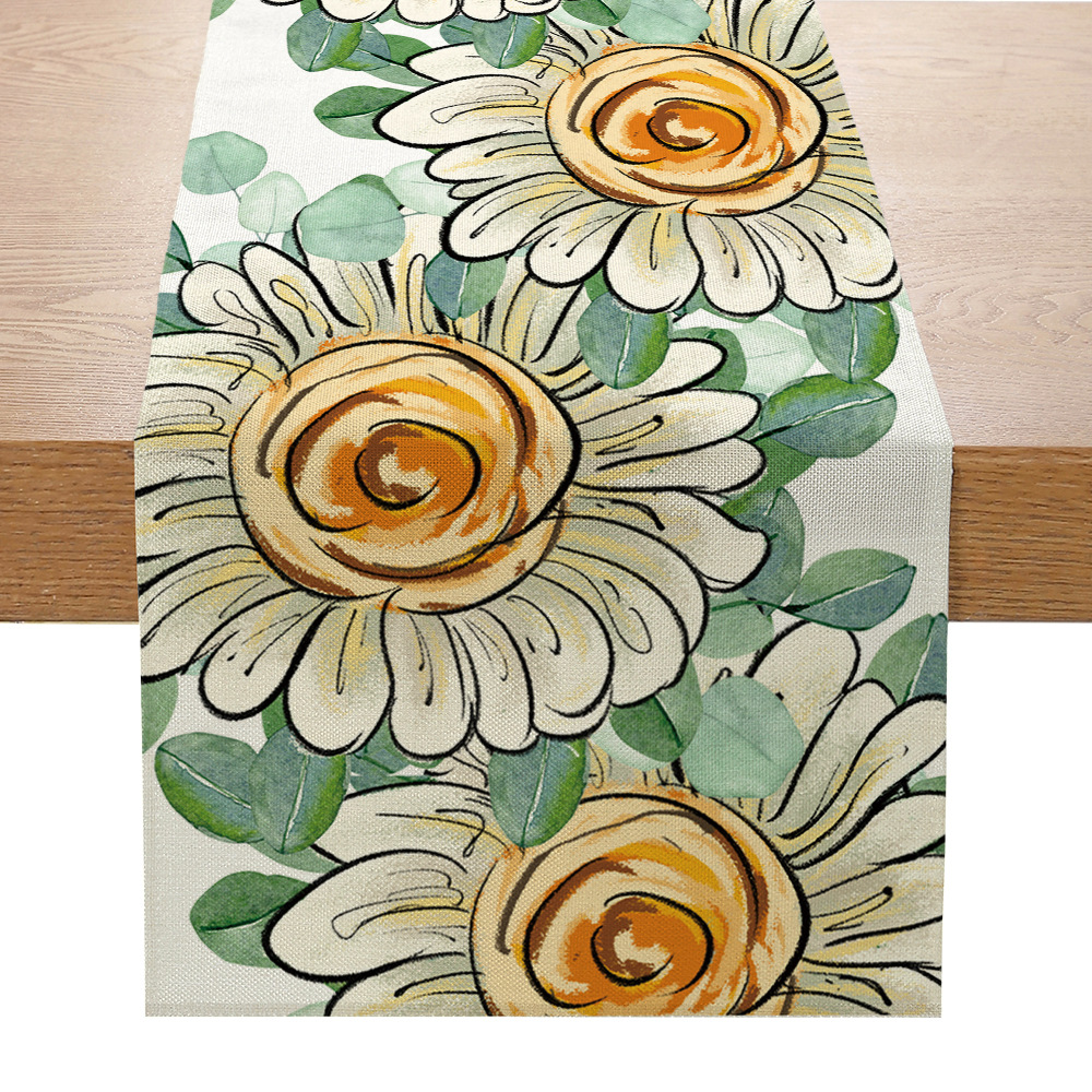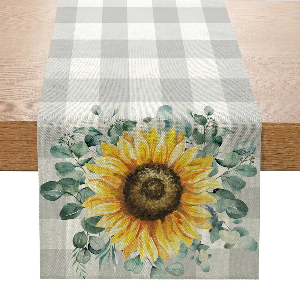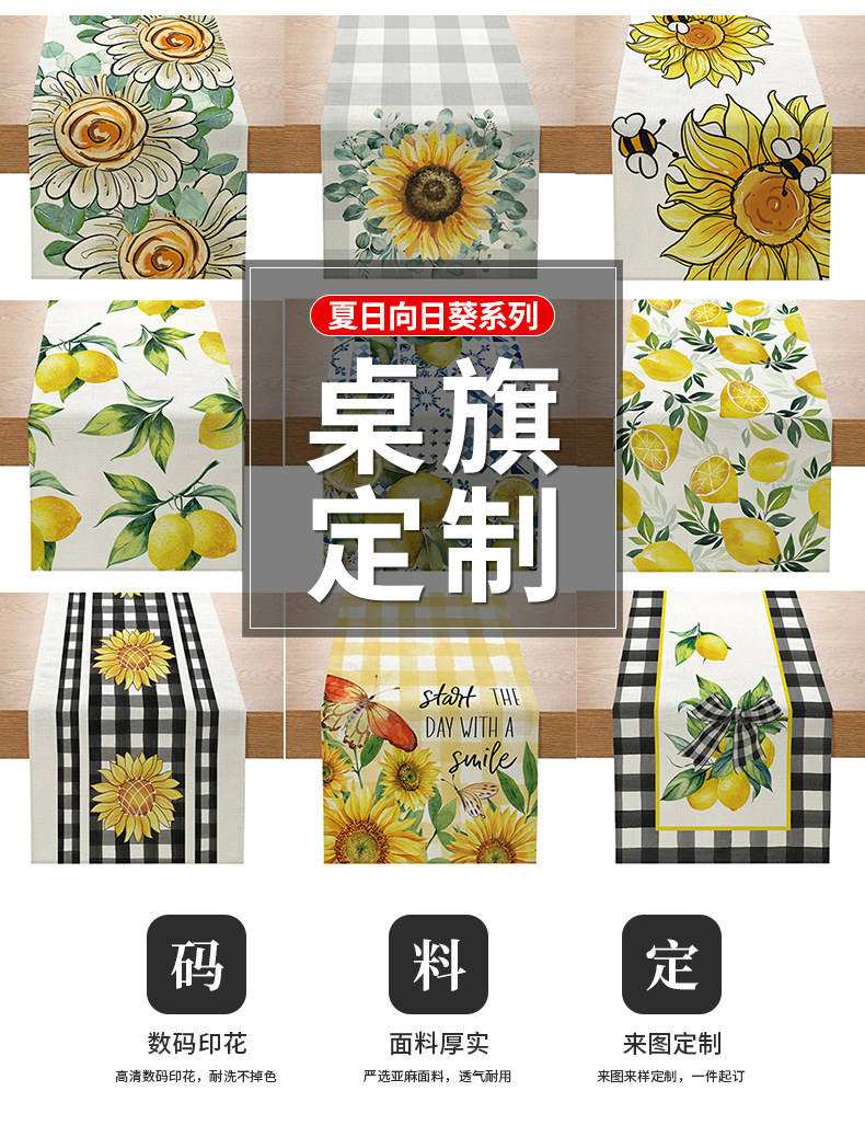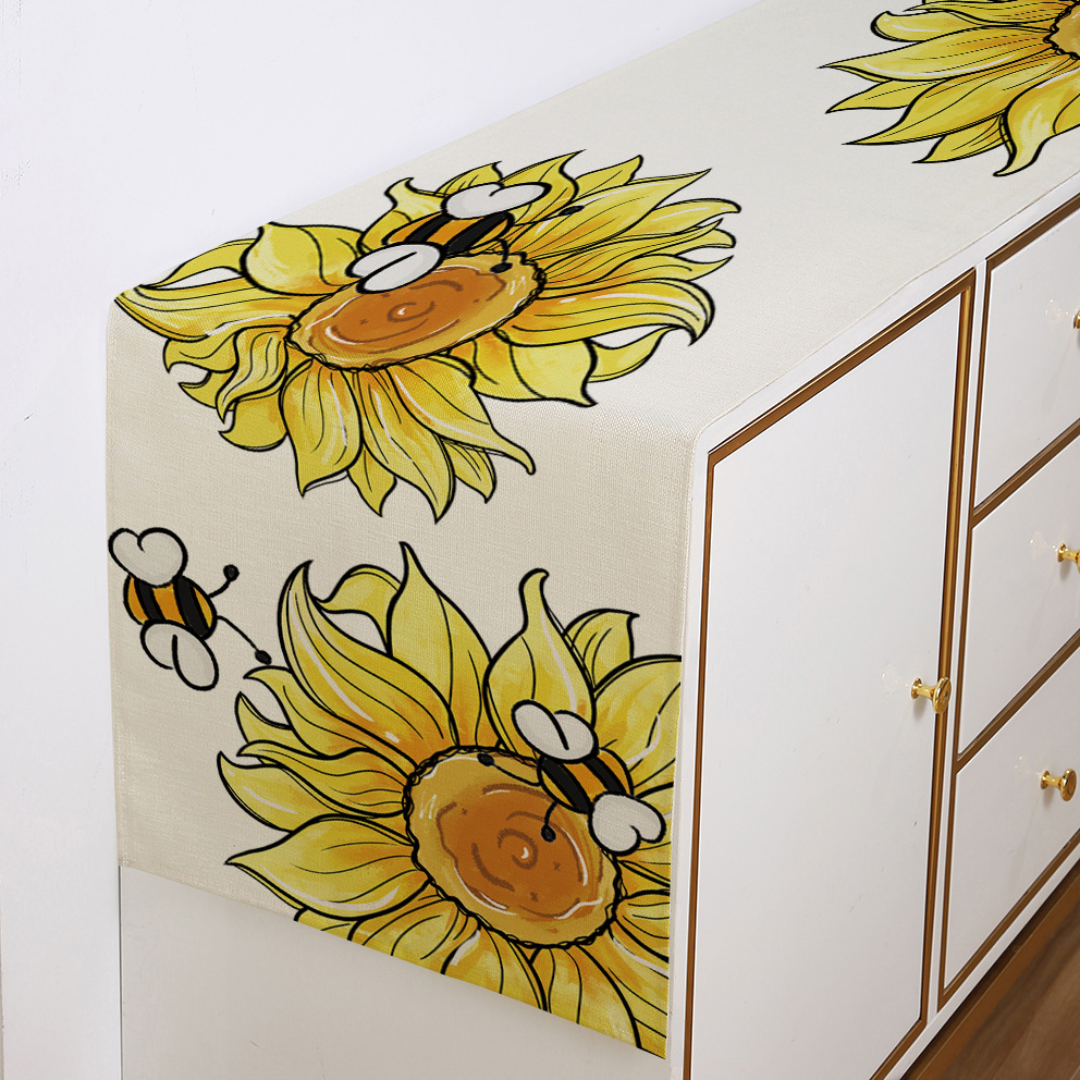跨境向日葵系列印花桌旗亚麻亚马逊家居厨房餐桌装饰台布现代简约