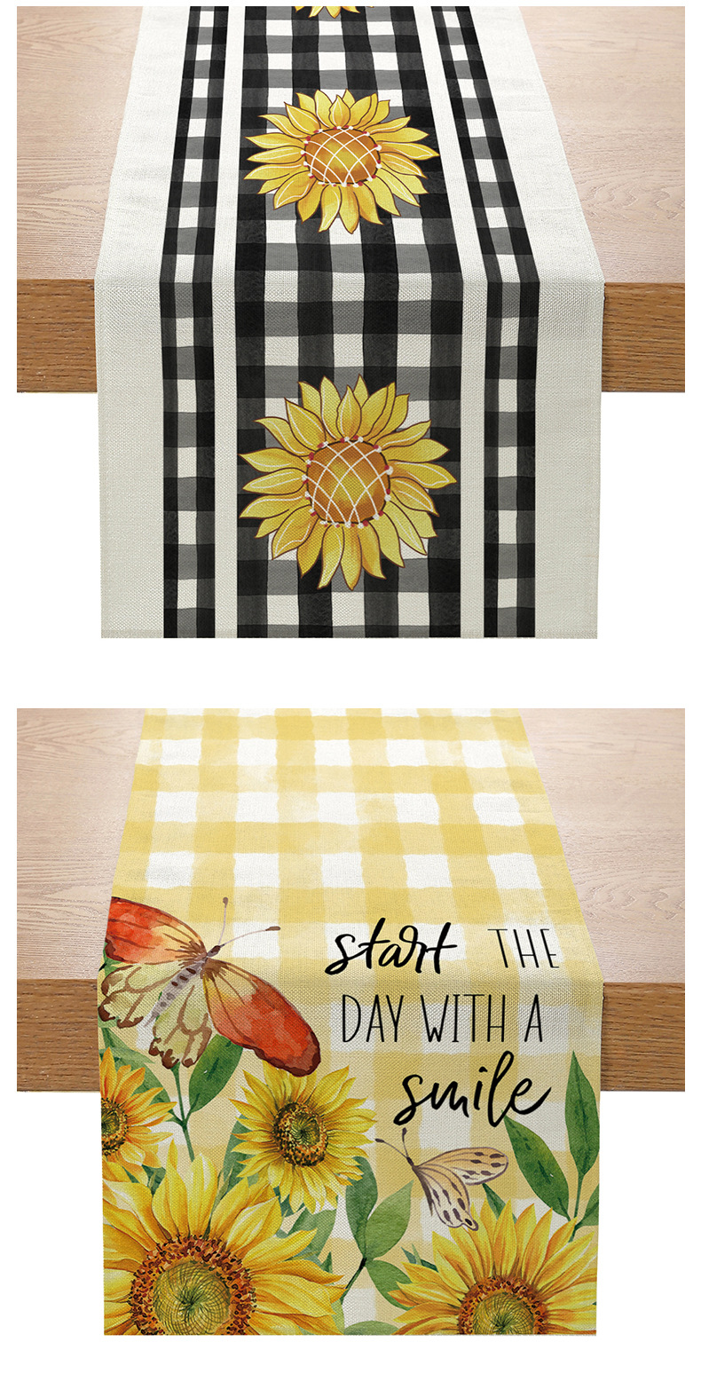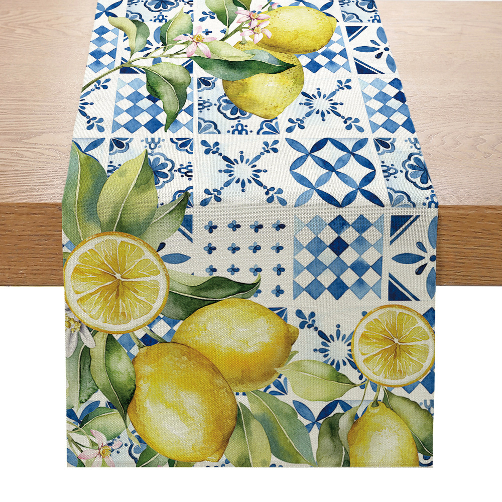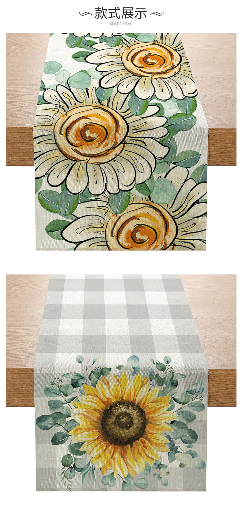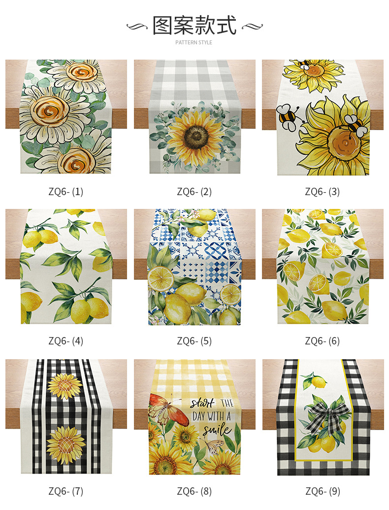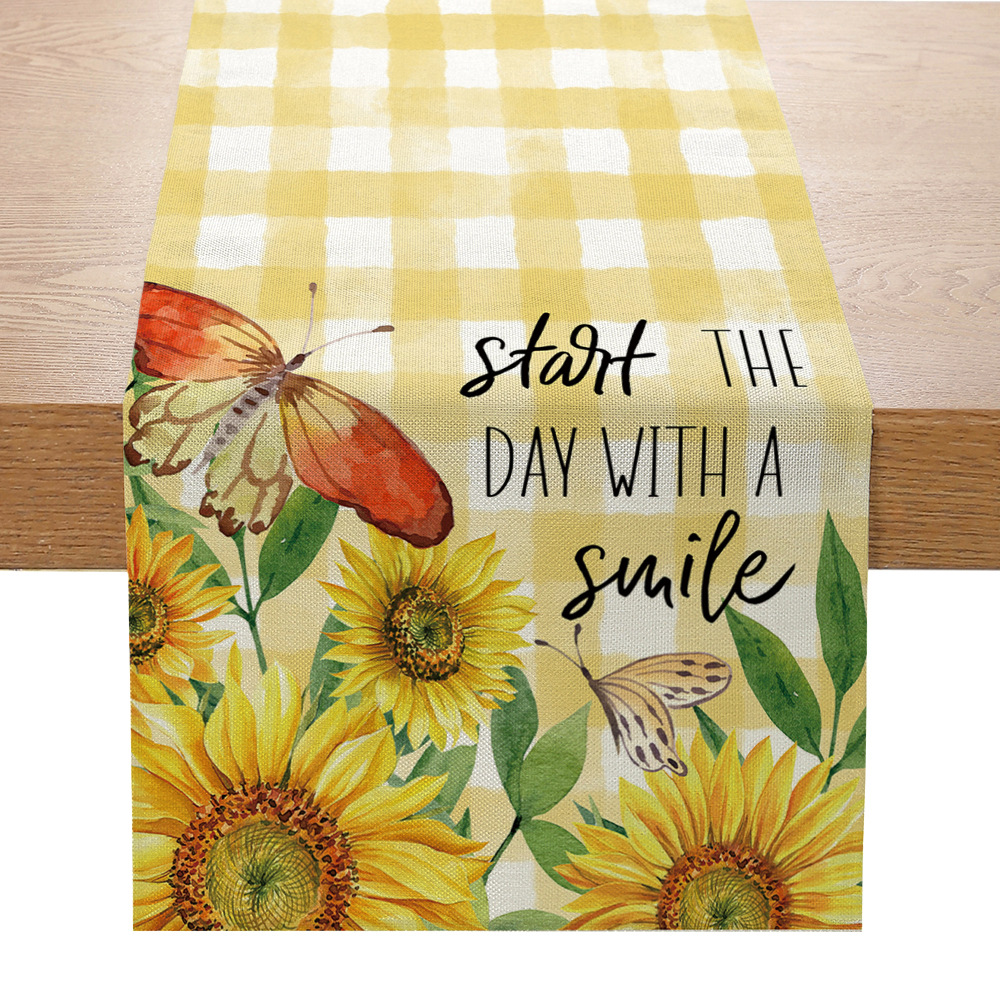 跨境向日葵系列印花桌旗亚麻亚马逊家居厨房餐桌装饰台布现代简约