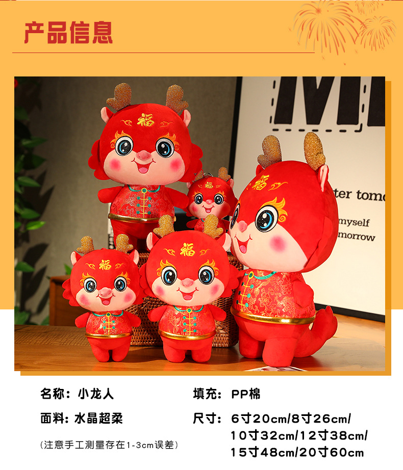 龙年吉祥物毛绒玩具小龙人玩偶布娃娃儿童生肖龙公仔公司年货礼品
