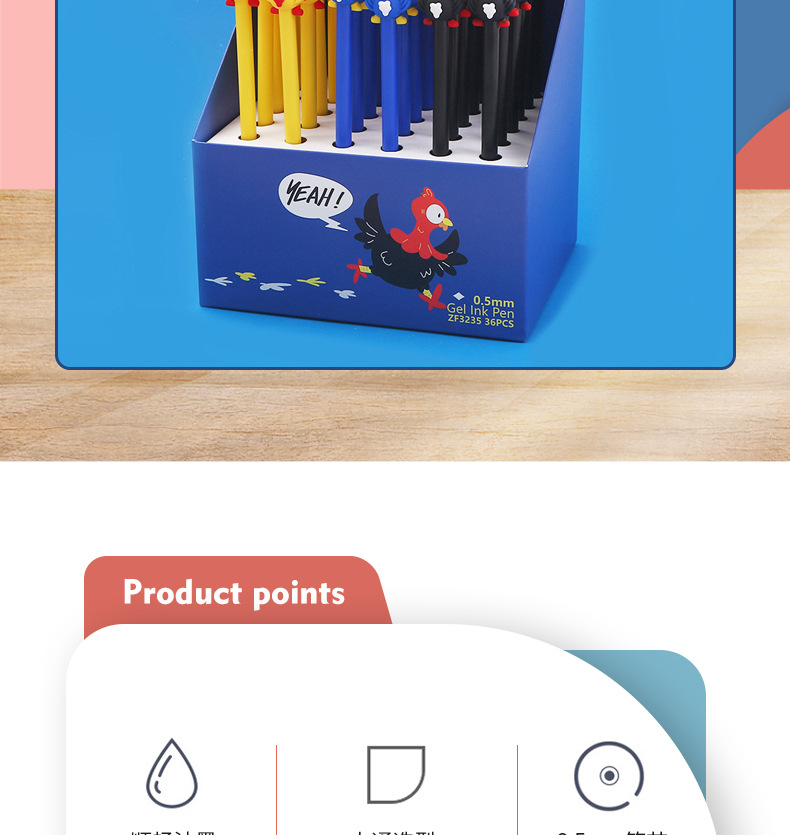 中帆中性笔ZF3235卡通火鸡黑色笔萌宠火鸡可爱签字黑色水笔0.5mm