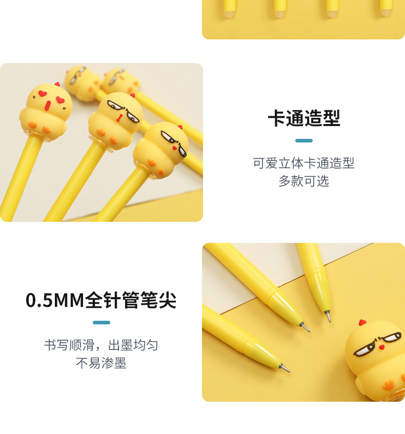 中帆文具小黄鸡系列卡通中性笔萌萌哒小鸡蛋壳硅胶立体头中性笔