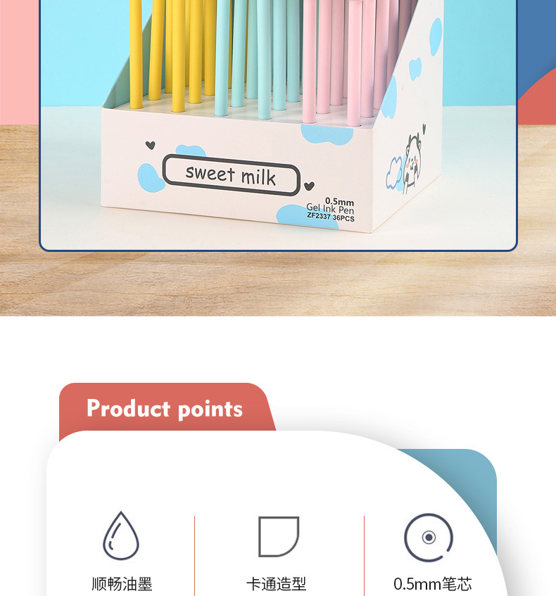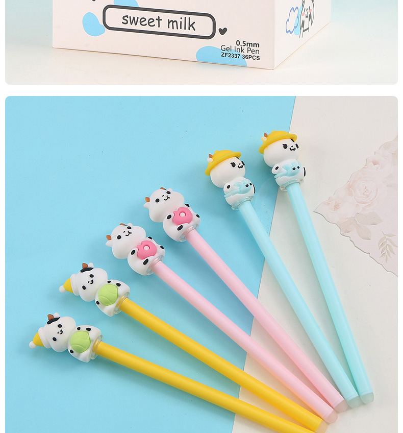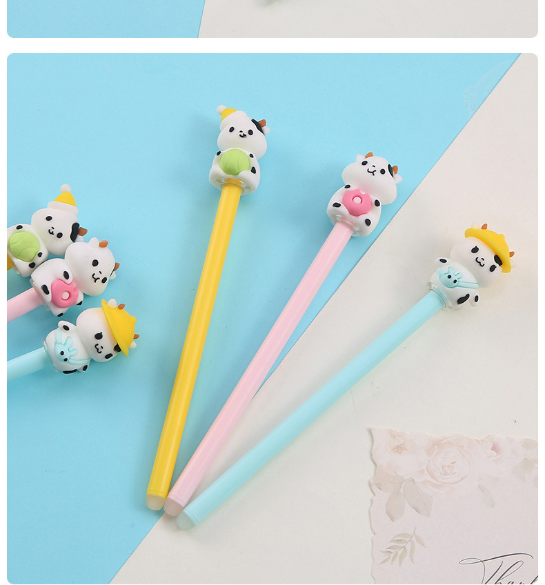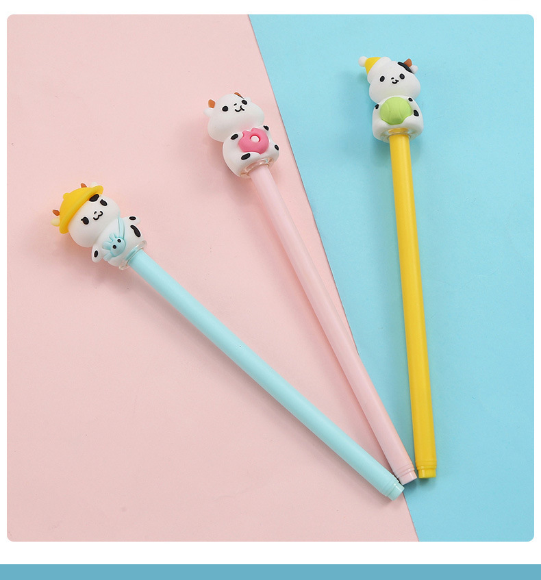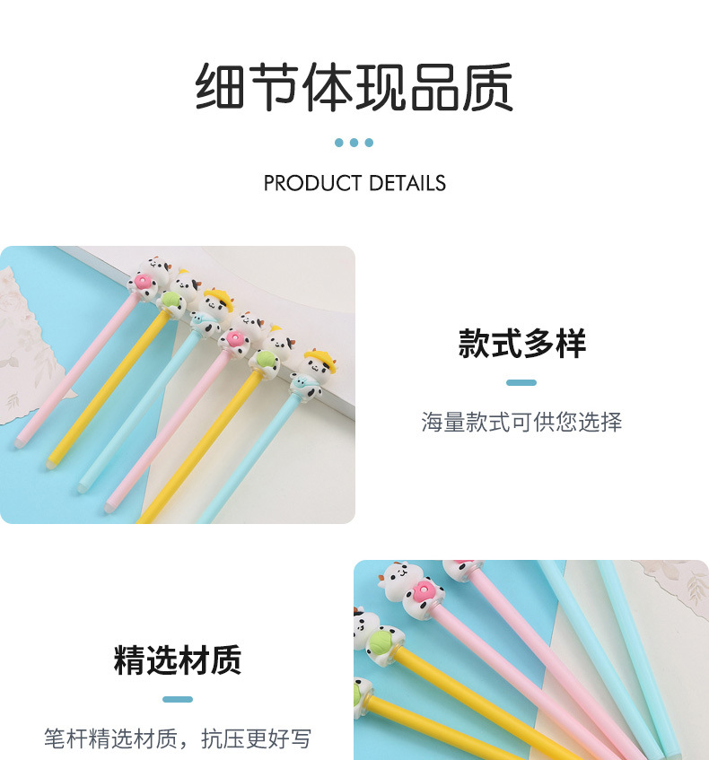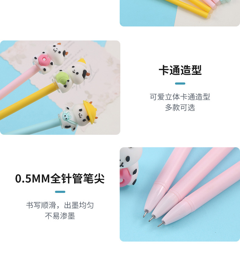 中帆文具创意卡通高颜值奶牛图案中性笔少女心学生水笔厂家批发中