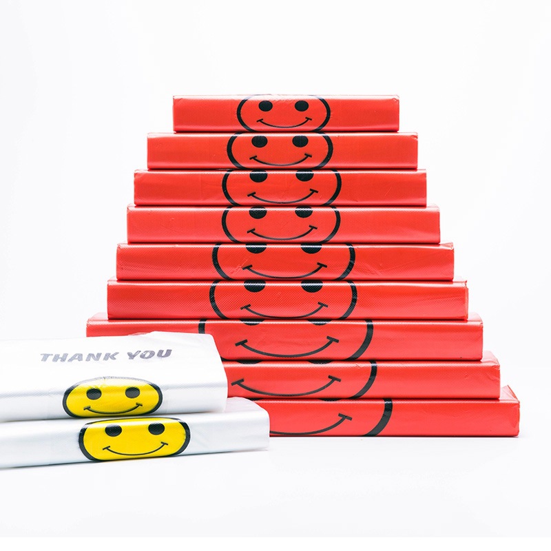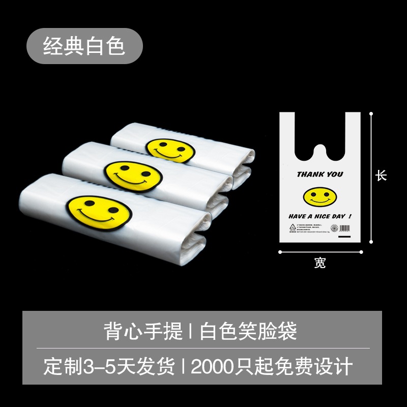 shopping bag supermarket vest shopping bag fruit takeaway packaging bag portable transparent smiley face plastic bag wholesale