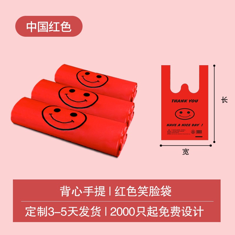 购物袋超市背心购物袋水果外卖包装袋手提透明笑脸塑料袋批发