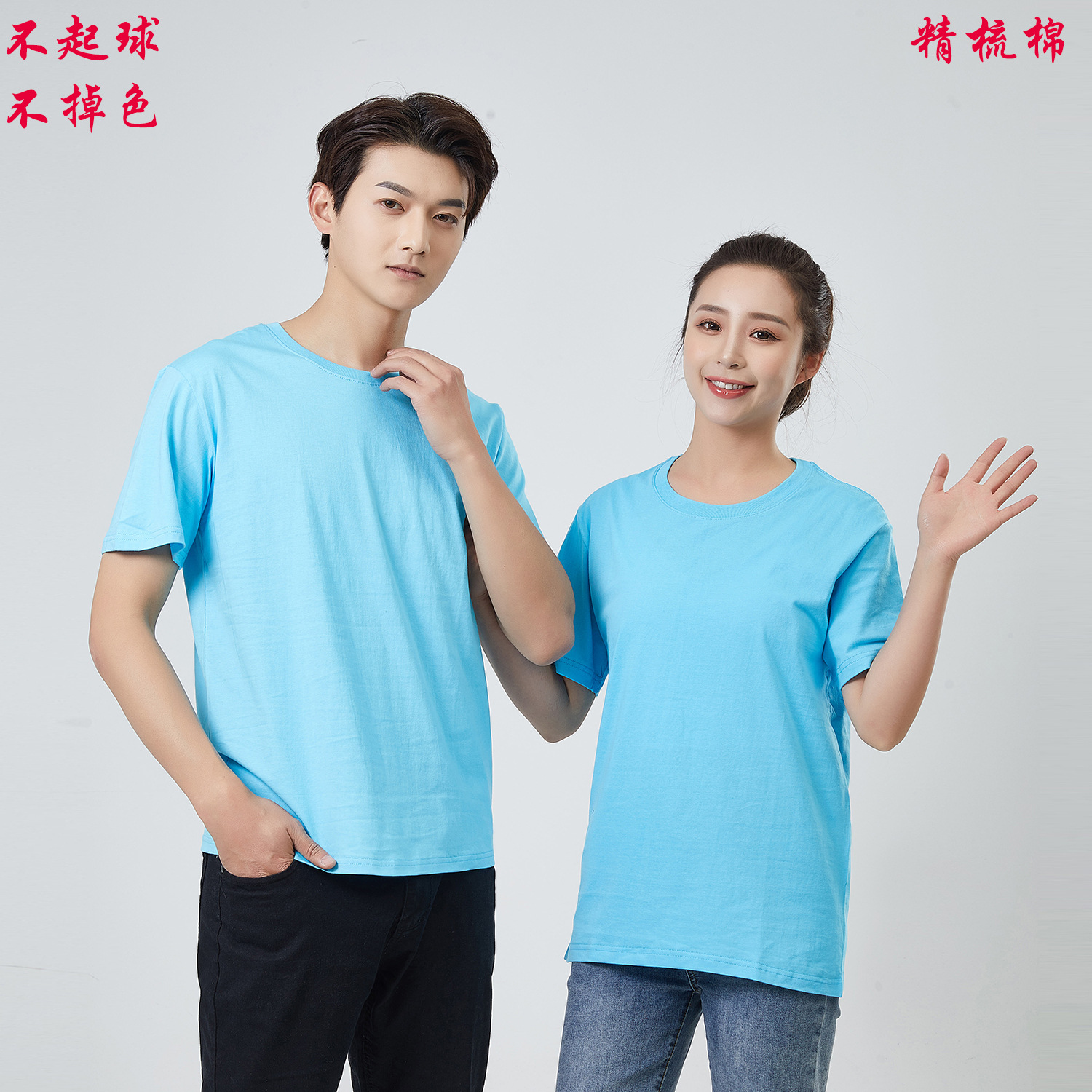 定纯棉圆领短袖空白潮牌T恤制logo 订广告文化衫工作团体班服印字