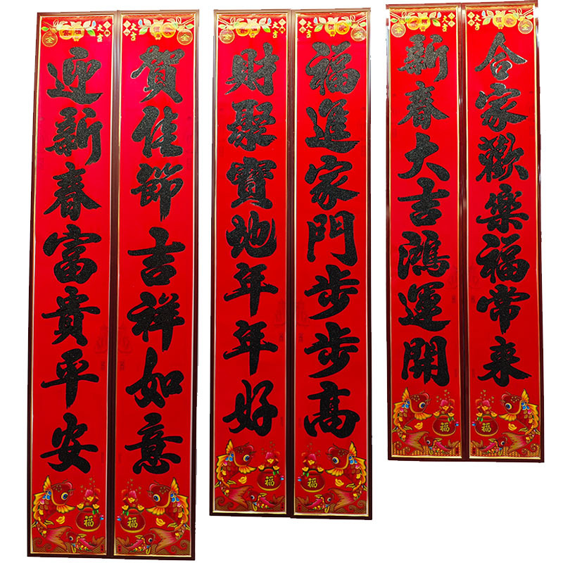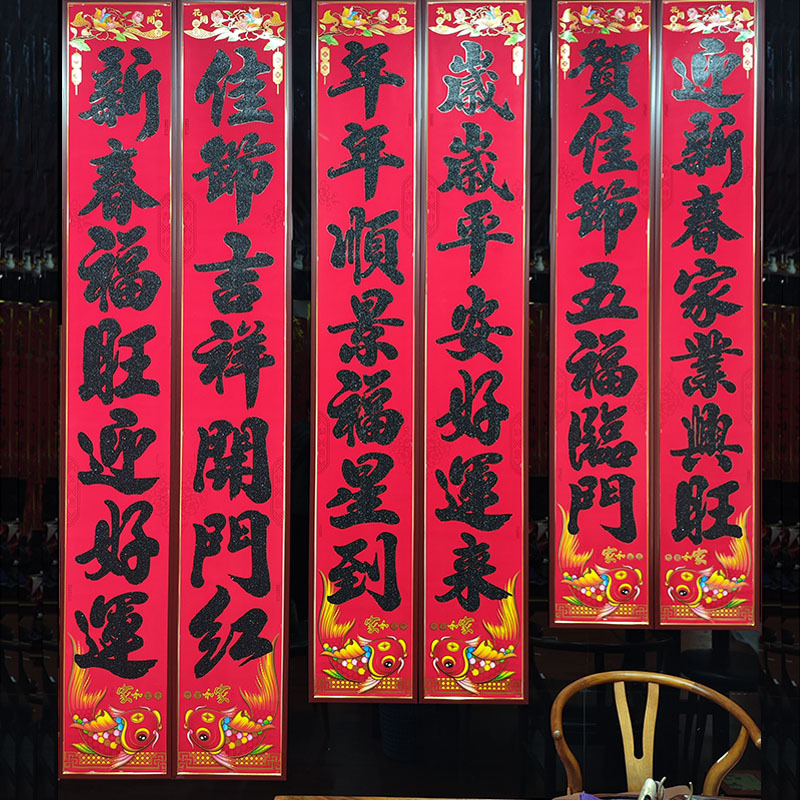 对联2026年春节烫金万年红书法春联年货厂家新年植绒对联批发