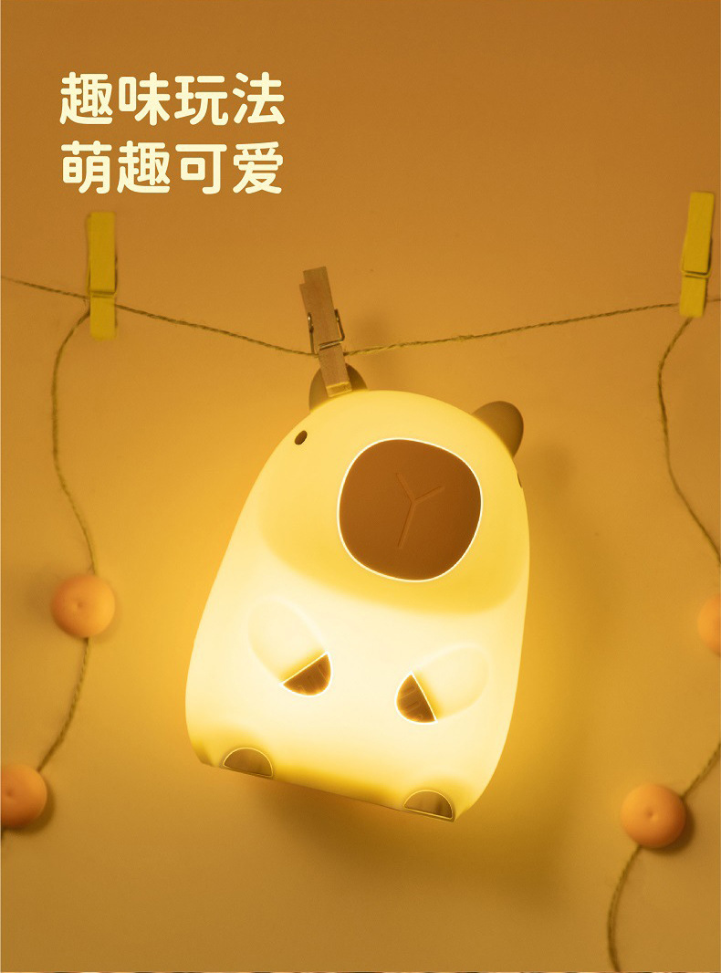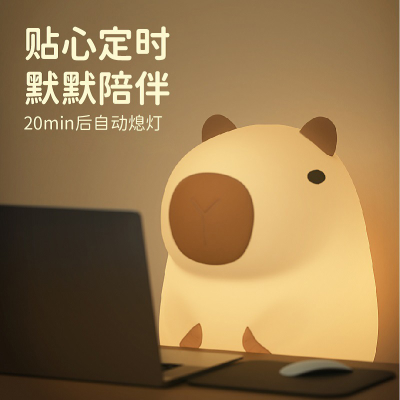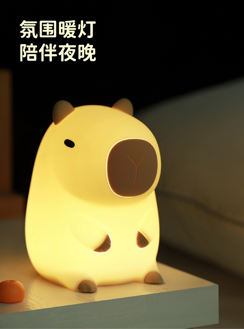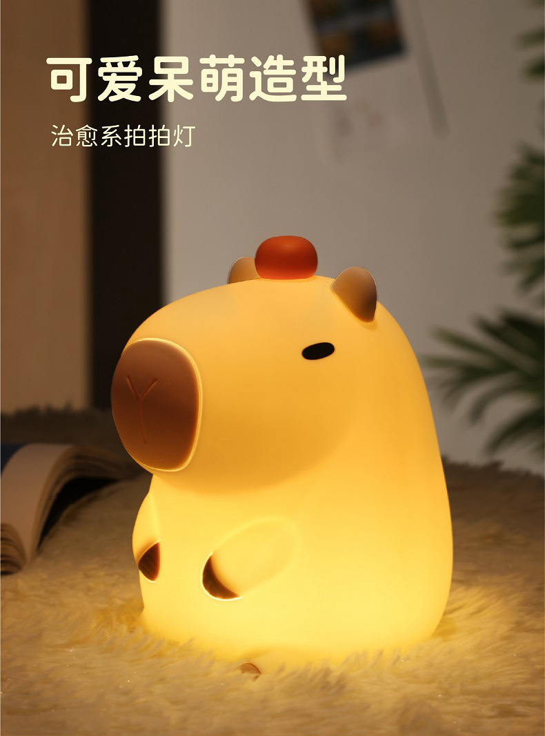 外贸专供卡皮巴拉定制logo卡通水豚拍拍硅胶灯婴儿喂奶柔光床头灯
