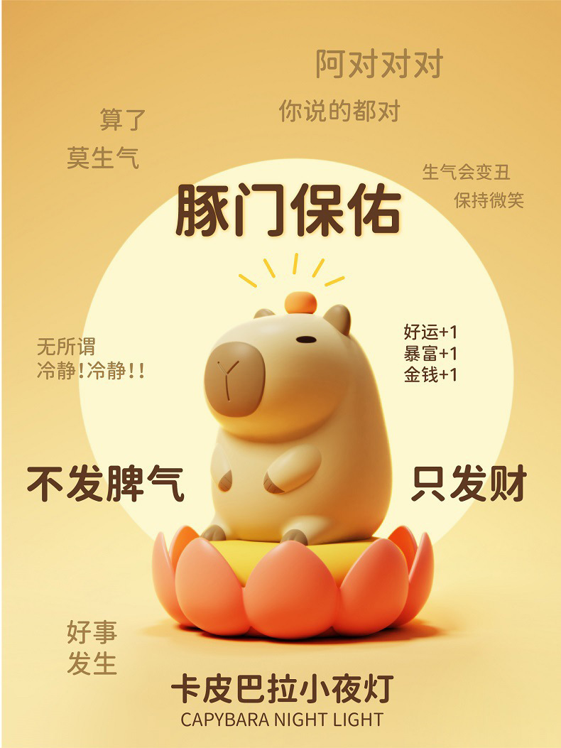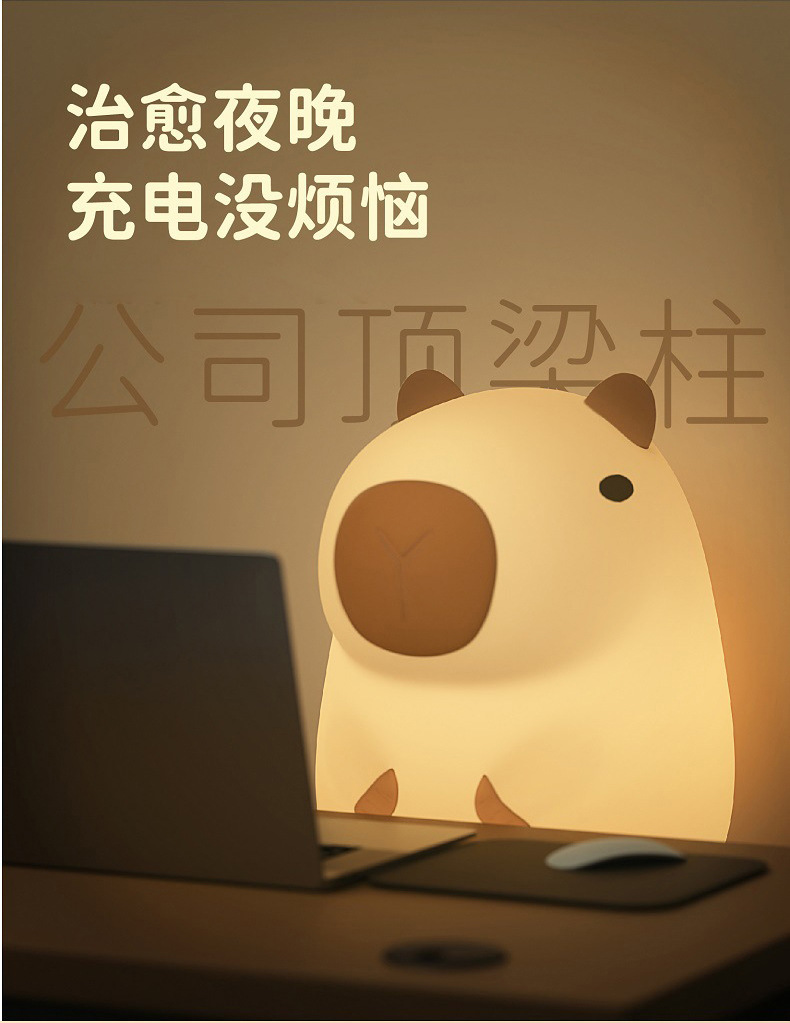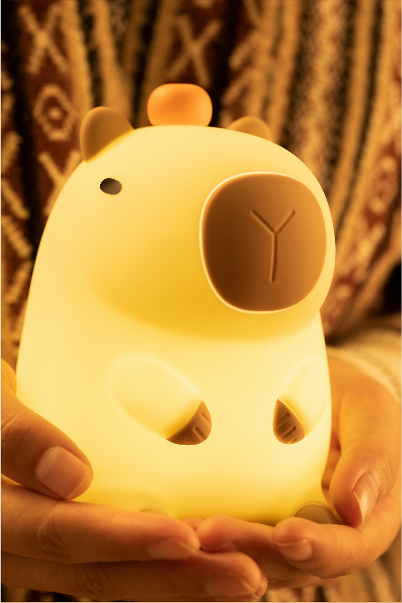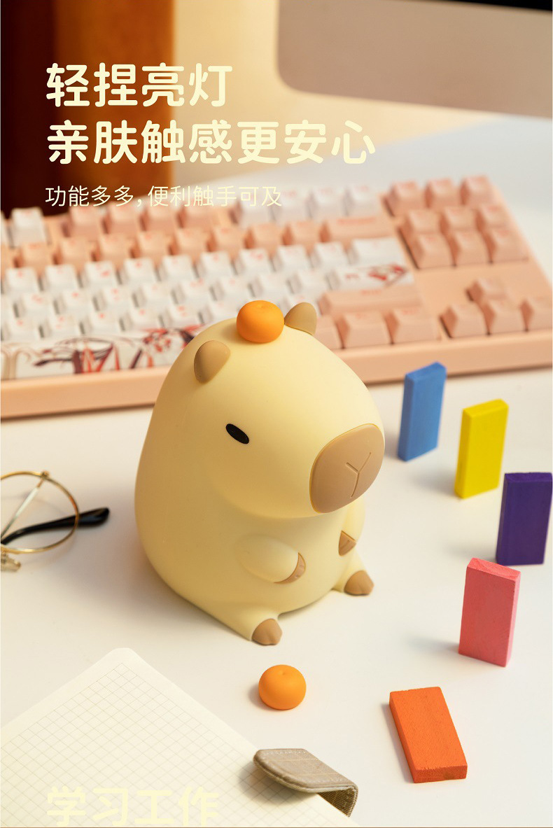 外贸专供卡皮巴拉定制logo卡通水豚拍拍硅胶灯婴儿喂奶柔光床头灯
