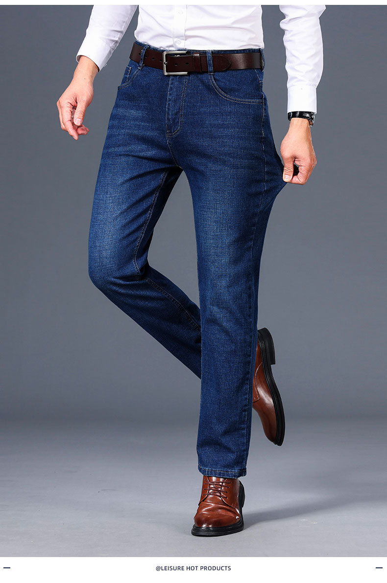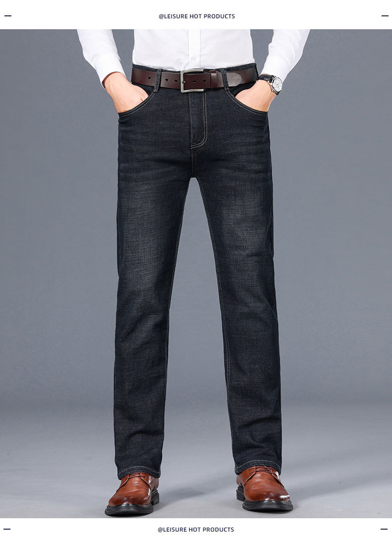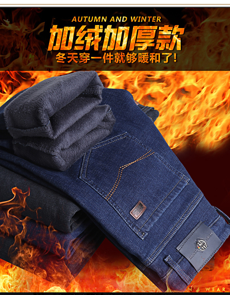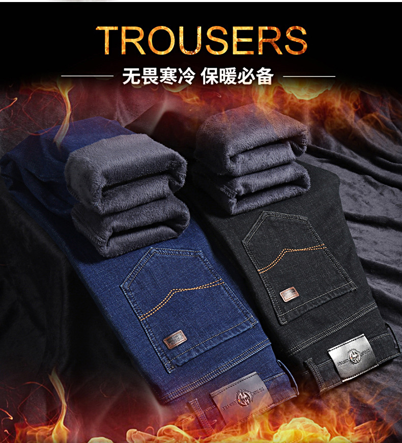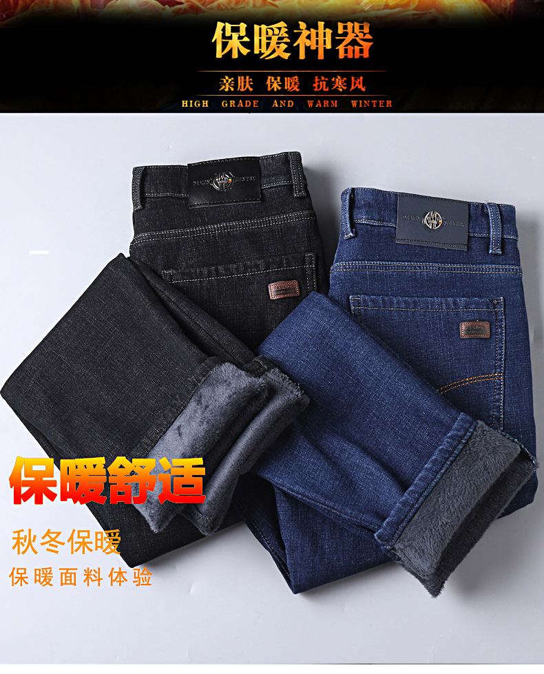 男士加绒加厚牛仔裤男宽松直筒冬季男式裤子休闲商务秋冬潮流长裤