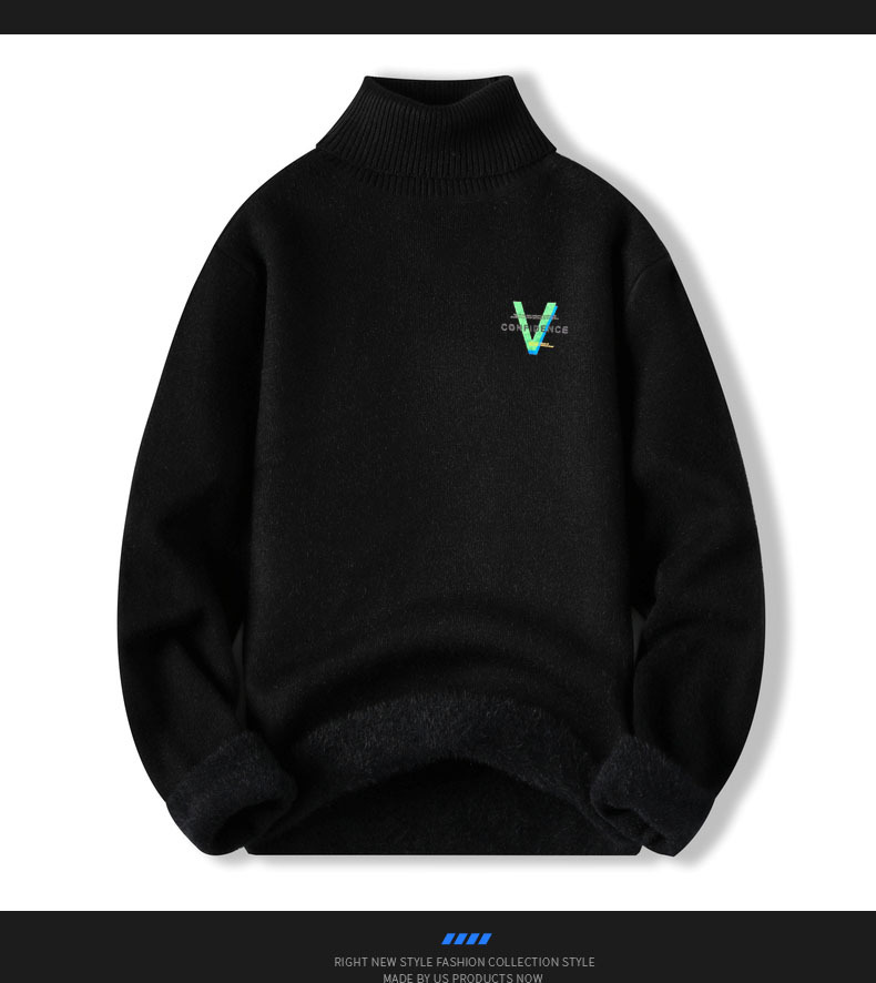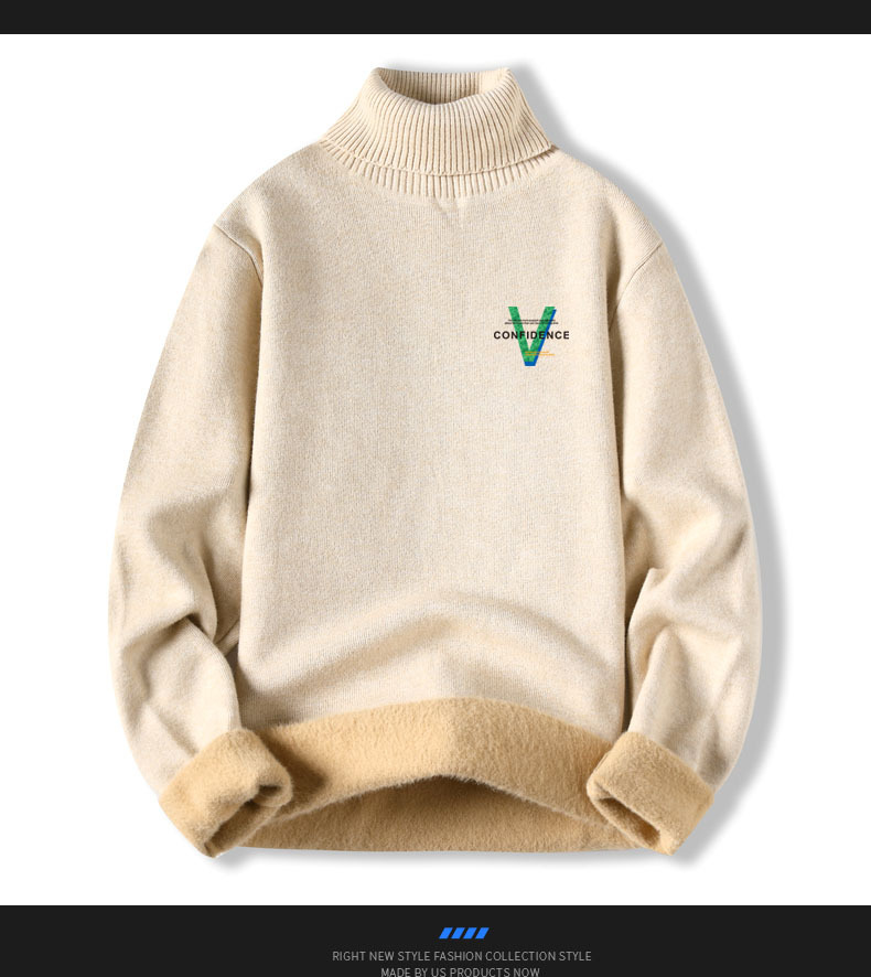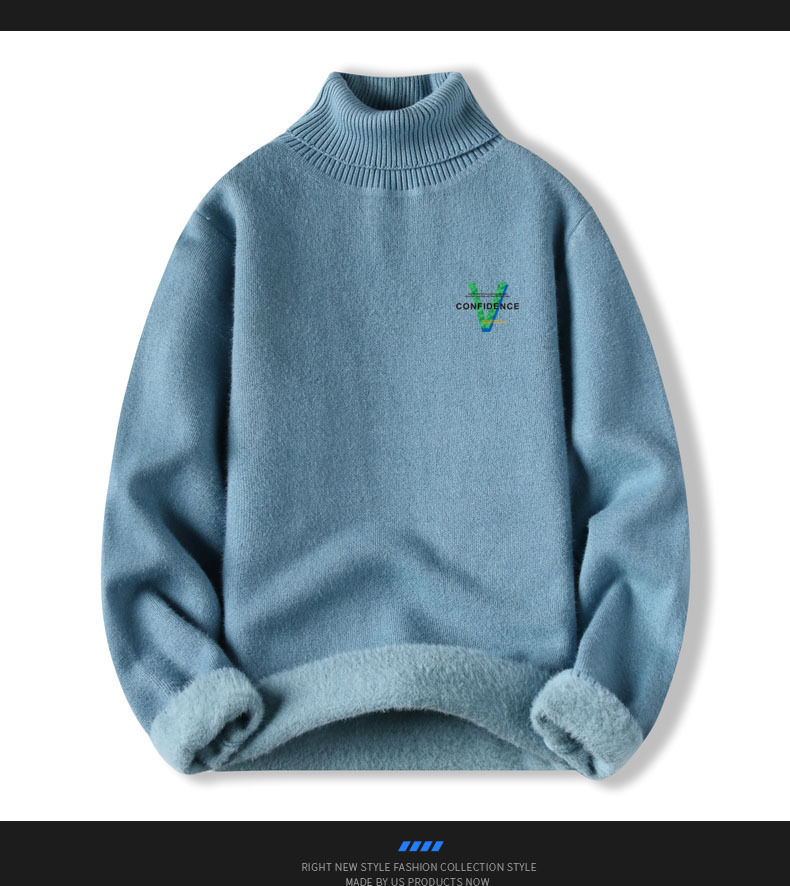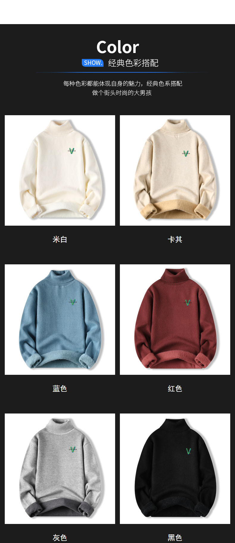 秋冬季针织衫毛衣男装加绒加厚韩版潮流圆领男士高领毛衫男士内搭