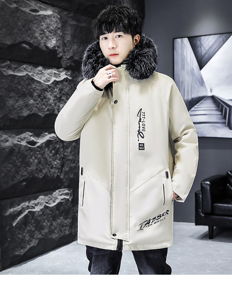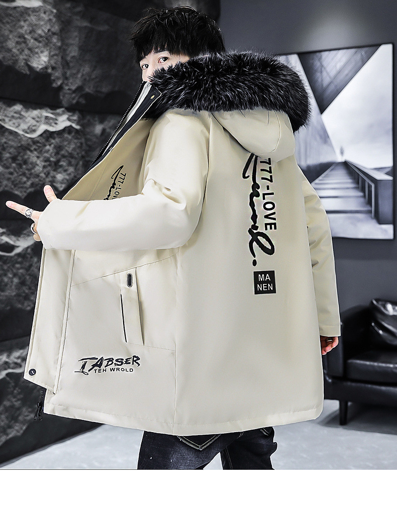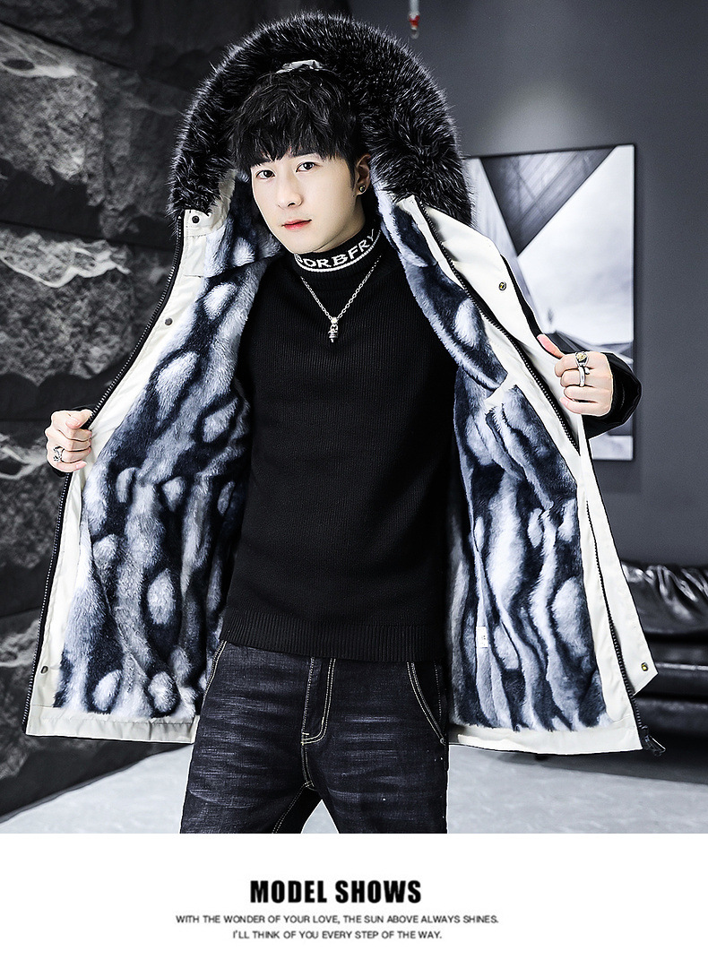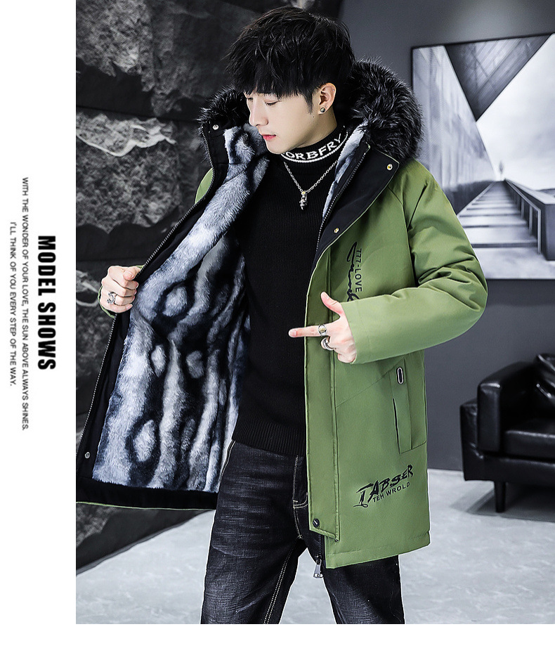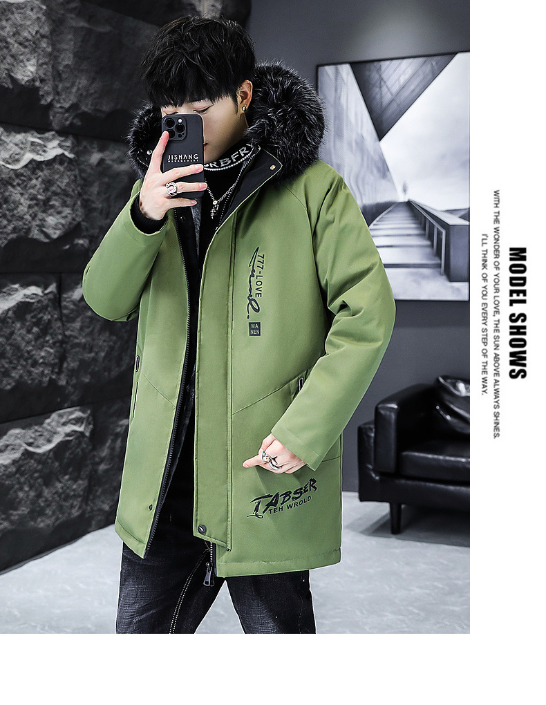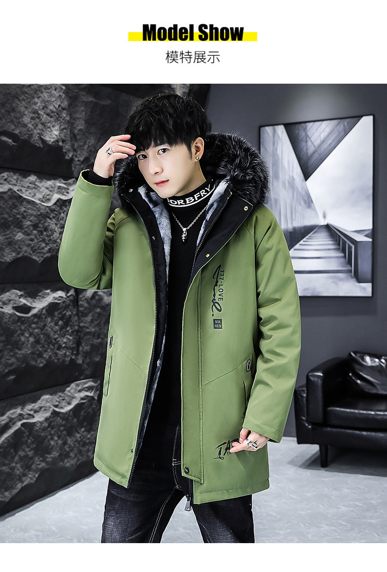 2023冬季加绒加厚派克服男休闲保暖中长款风衣外套连帽毛领棉服男