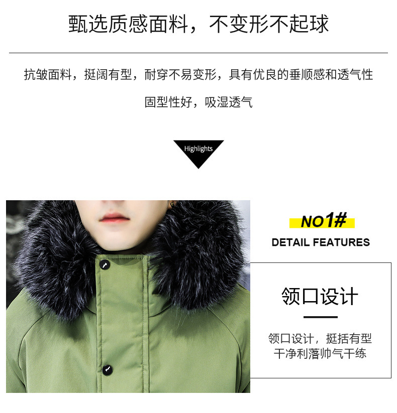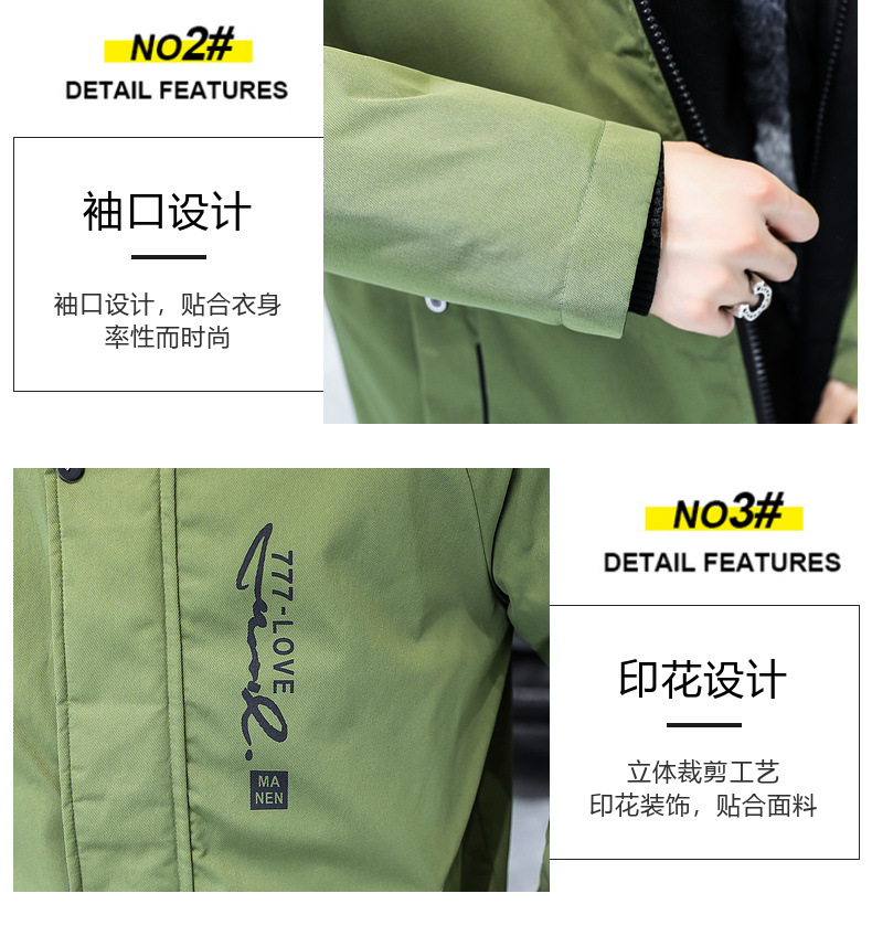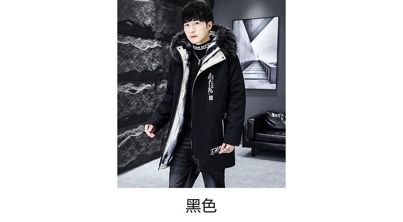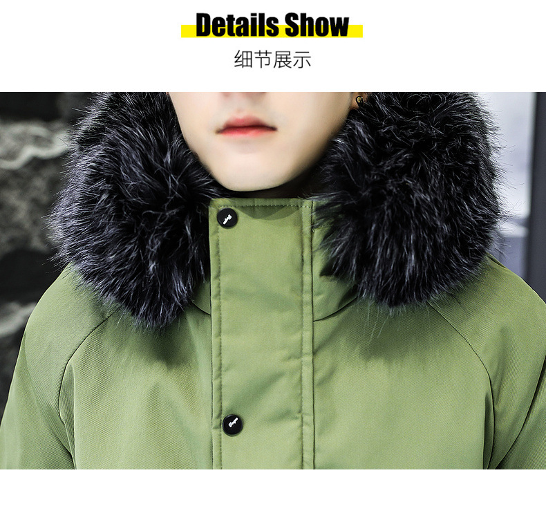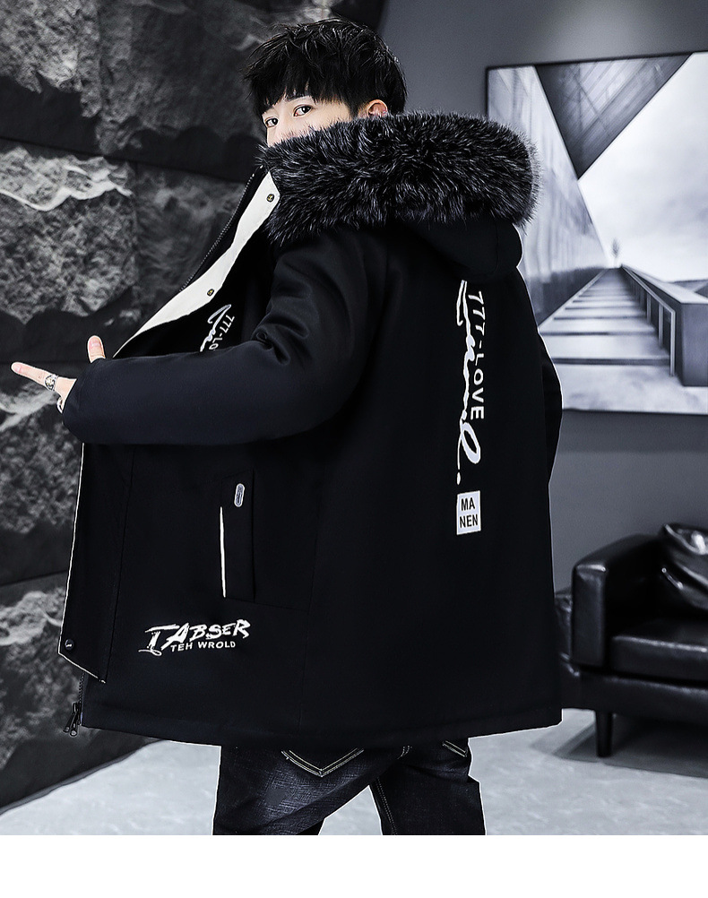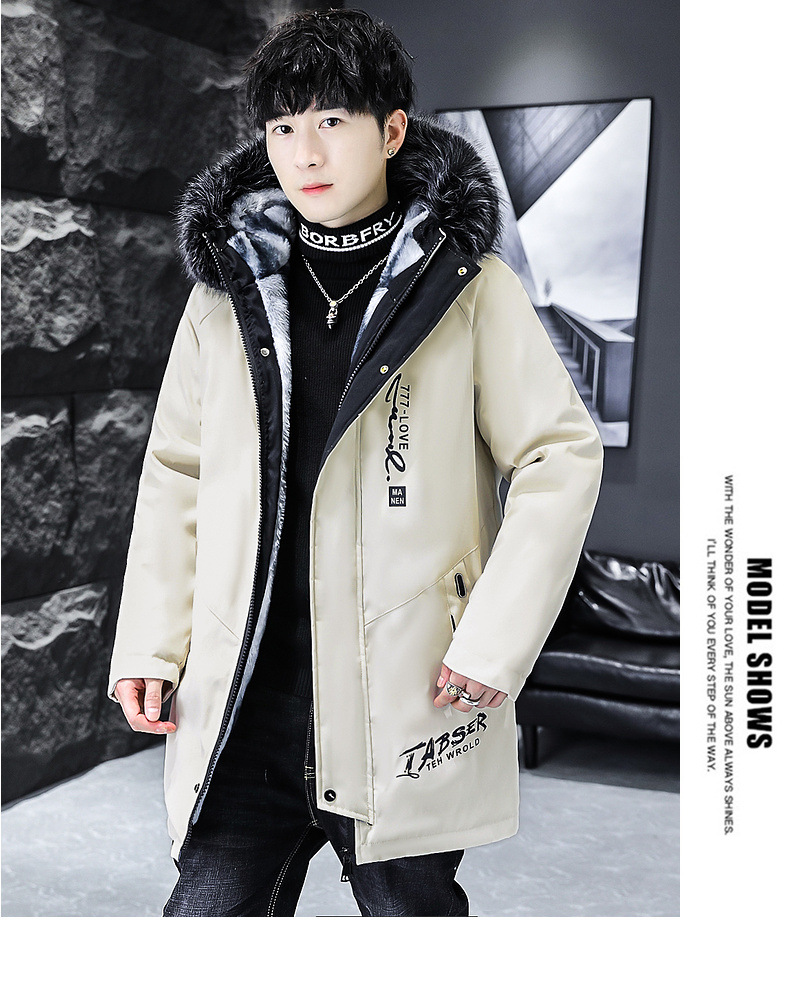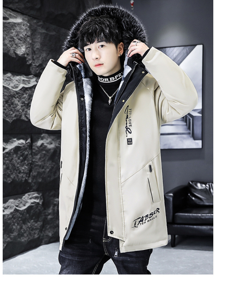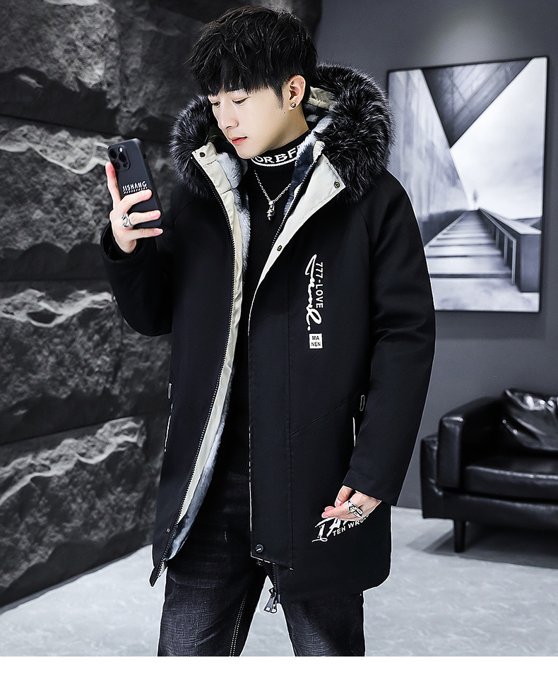 2023冬季加绒加厚派克服男休闲保暖中长款风衣外套连帽毛领棉服男