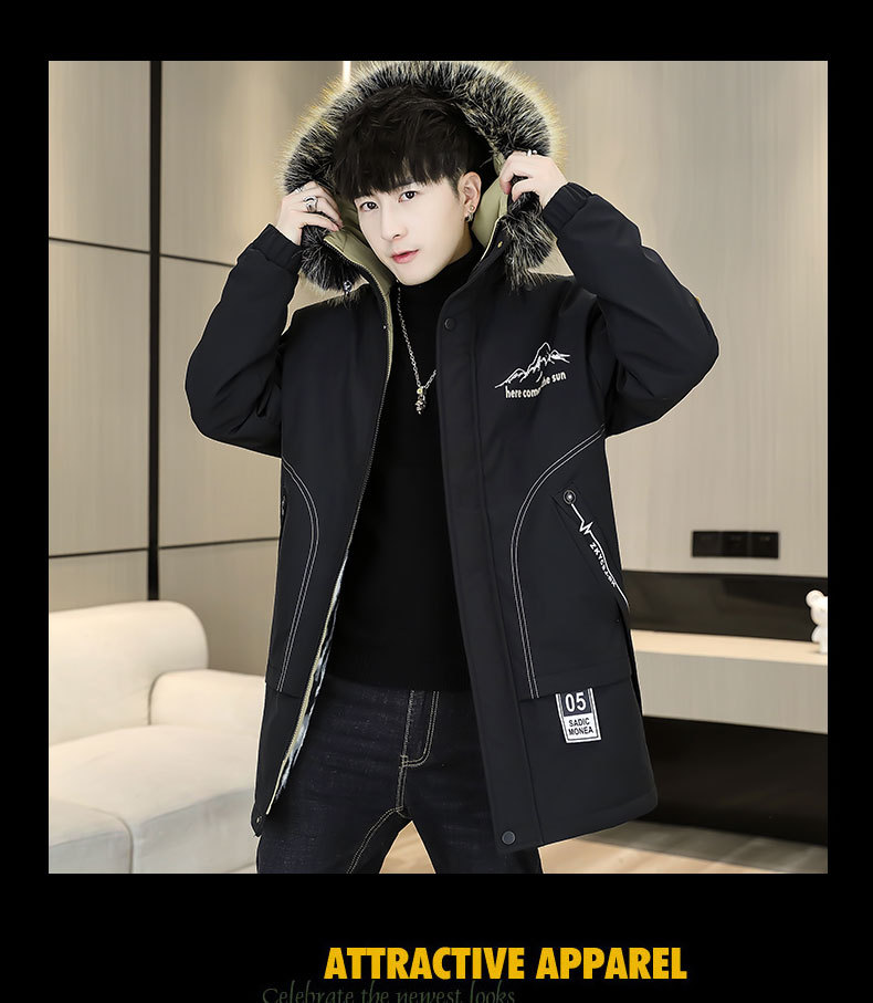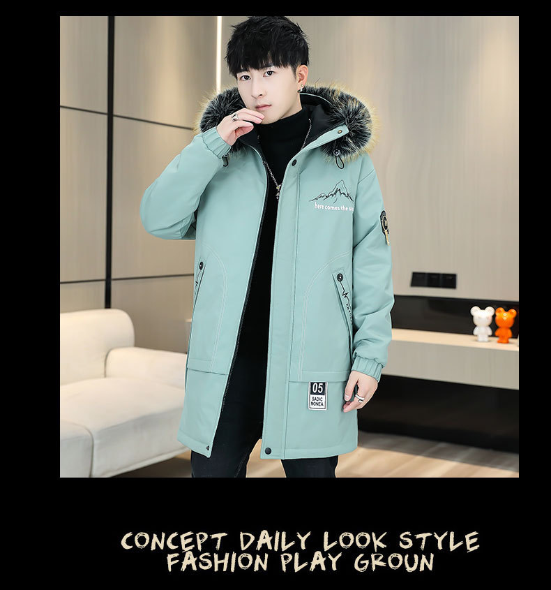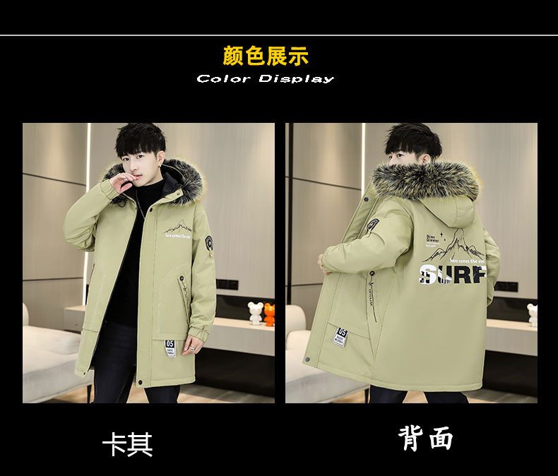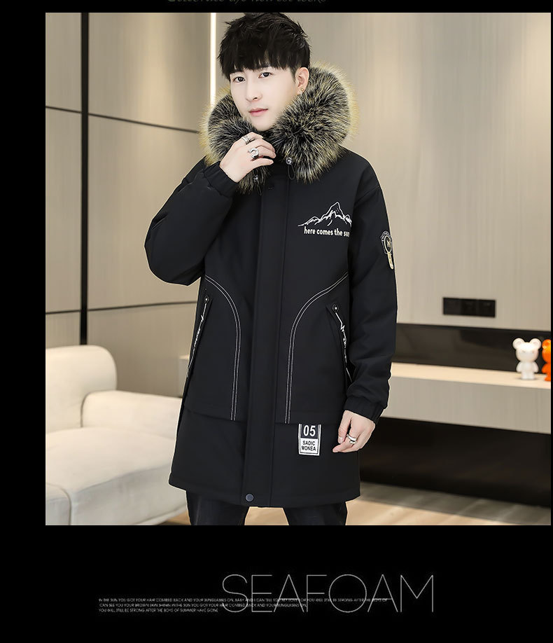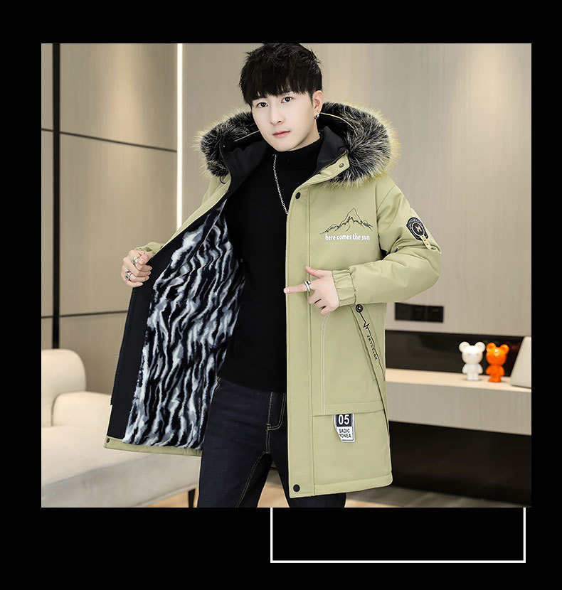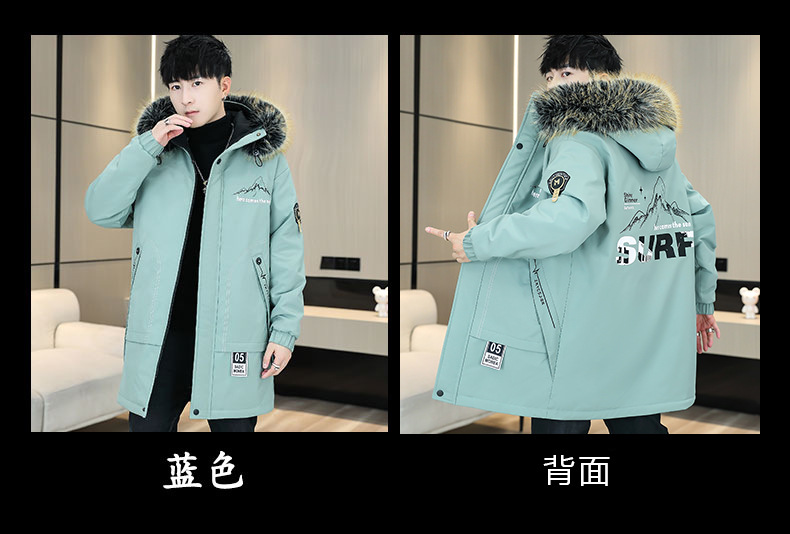 2023冬季新款男士保暖连帽外套中长款潮牌加绒加厚宽松派克服棉衣