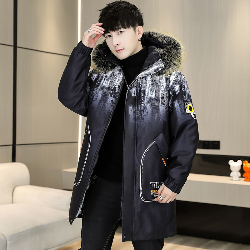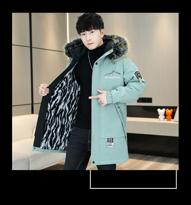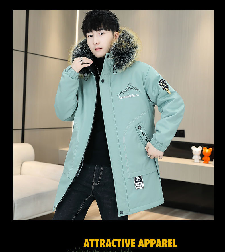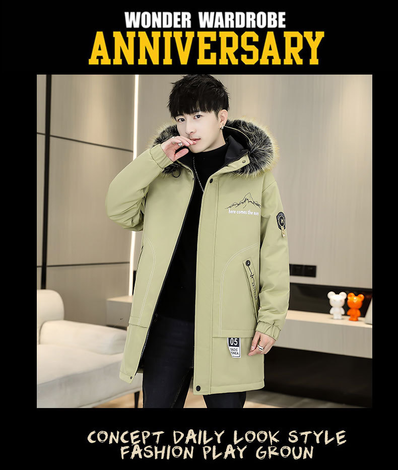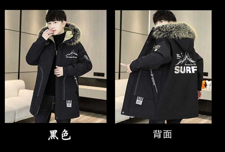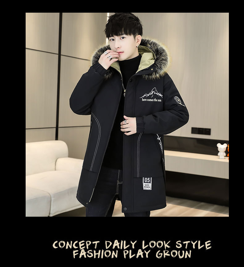 2023冬季新款男士保暖连帽外套中长款潮牌加绒加厚宽松派克服棉衣