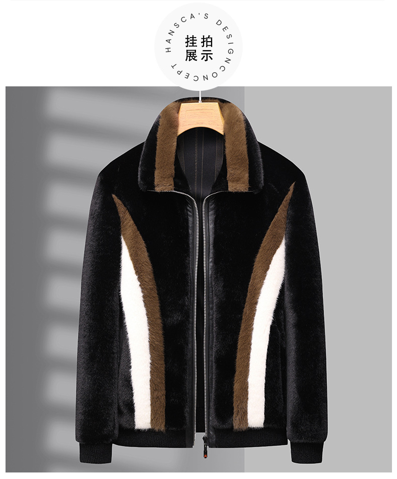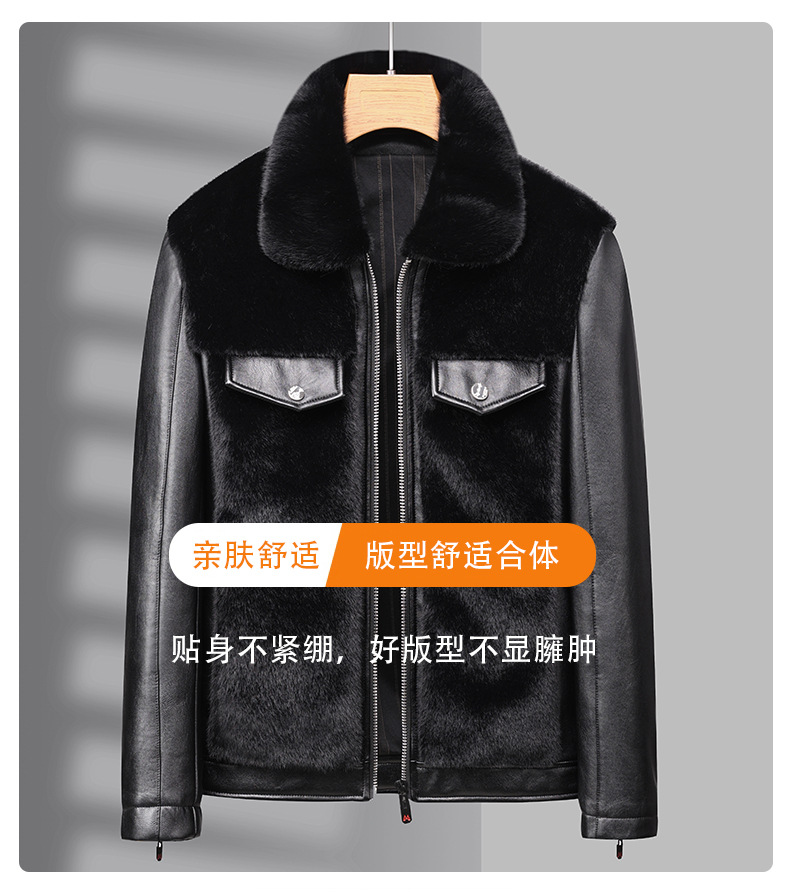 外贸爆款海宁冬季金貂绒男士皮毛一体貂皮大衣保暖水貂绒夹克外套