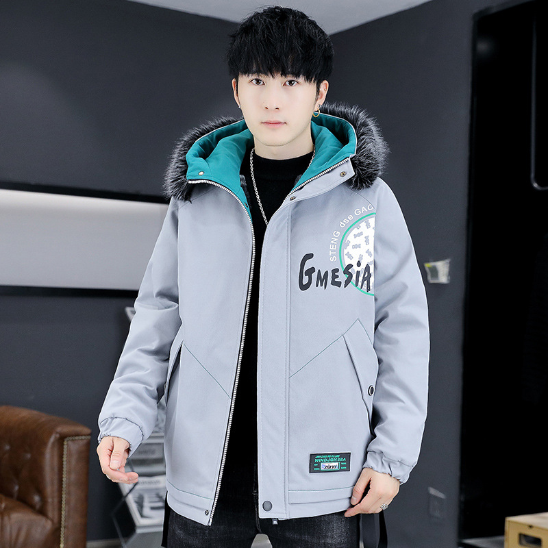 外贸工装棉衣男冬季韩版加绒加厚羽绒棉袄青少年冬装连帽外套棉服