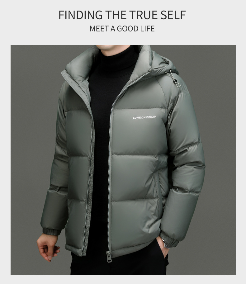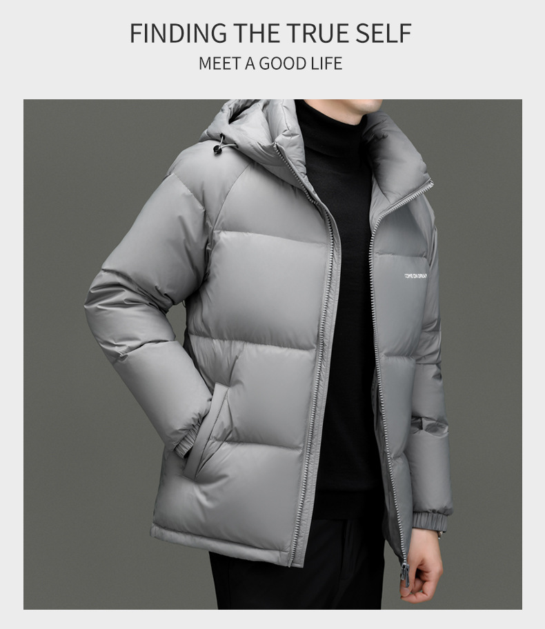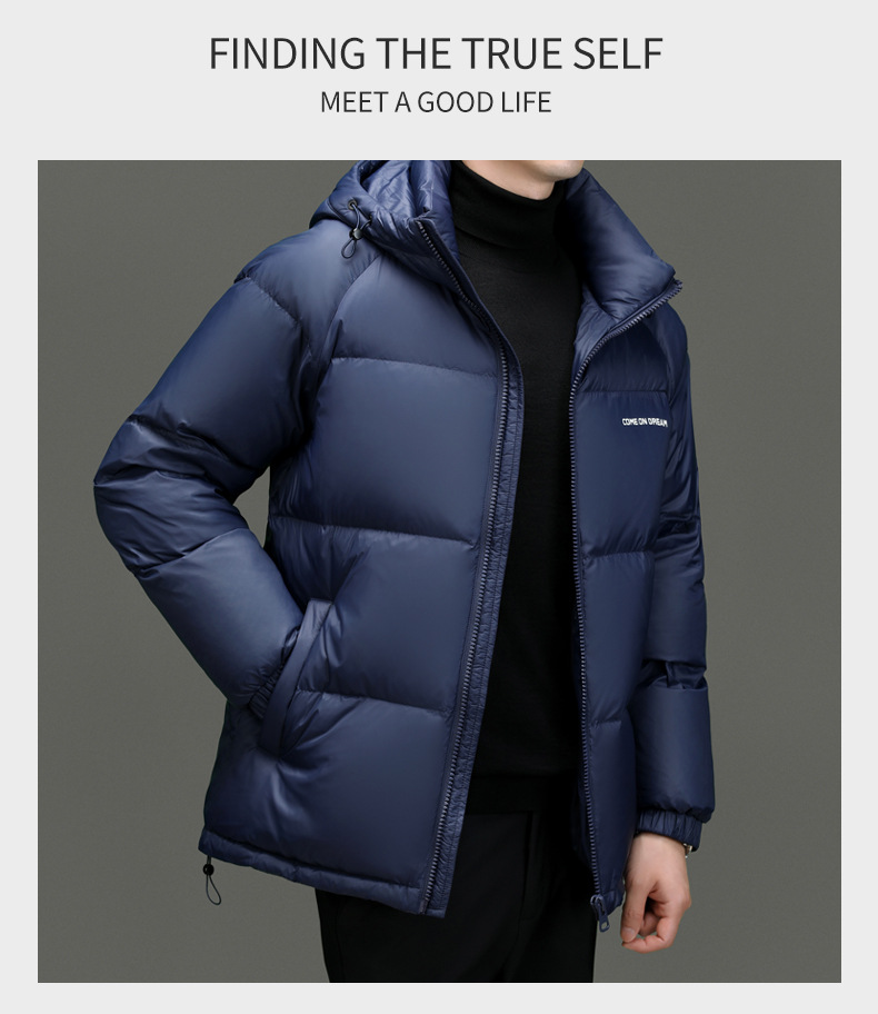 2023冬新款男士羽绒服 休闲连帽鸭绒面包服男外套一件代发FS23808
