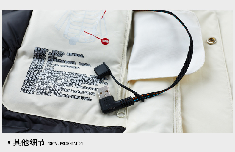 2023冬新款男女款羽绒服 可充电连帽鸭绒保暖外套 一件代发FS3990