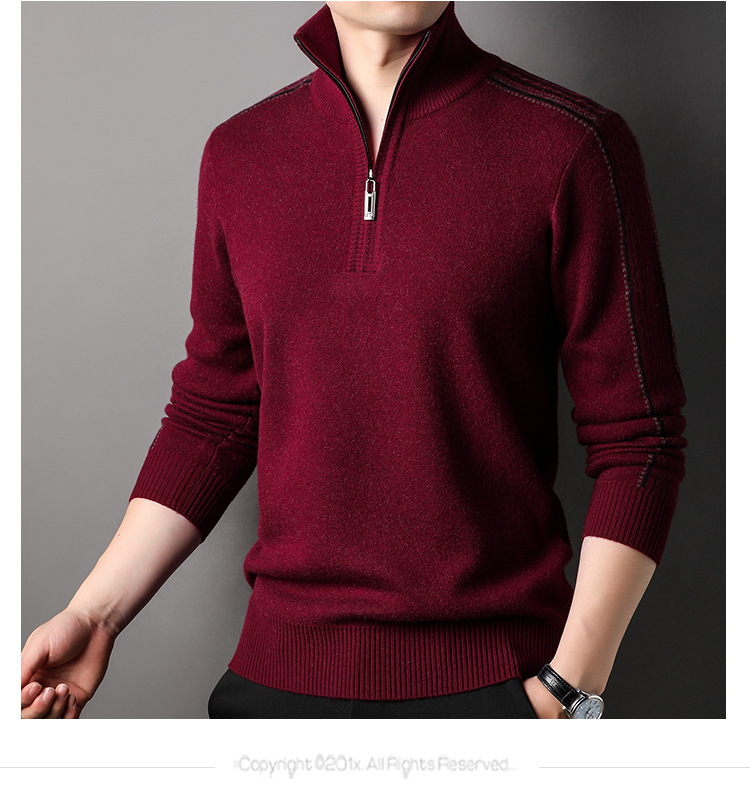 2023冬季新款男士羊毛衫 休闲加厚羊毛拉链高领毛衣一件代发81738