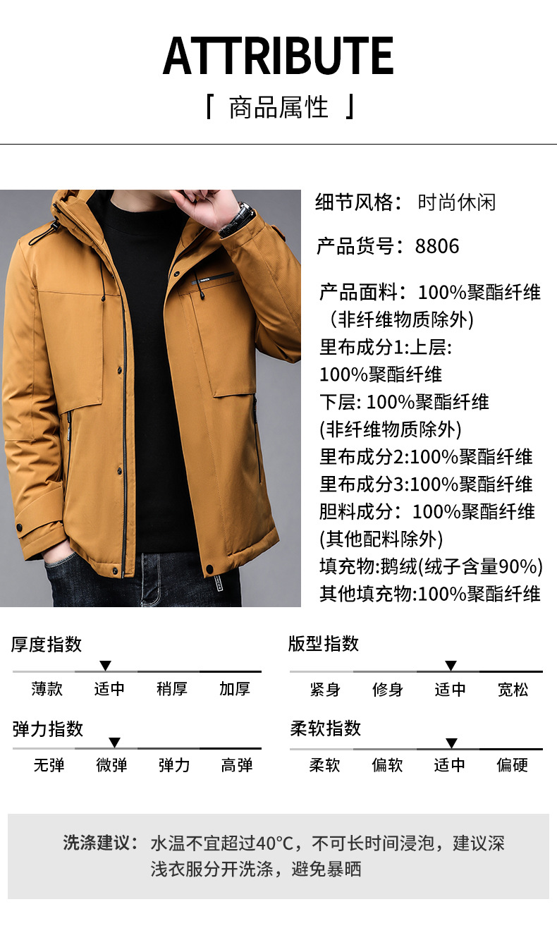 2023冬新款男士羽绒服 休闲鹅绒连帽男装保暖男外套一件代发Y8806