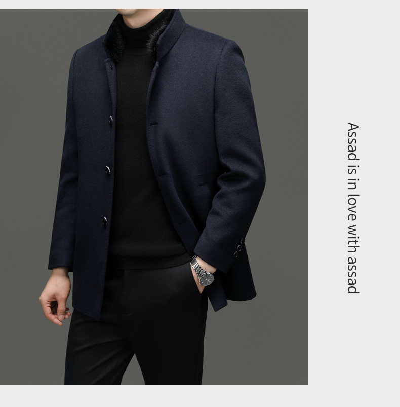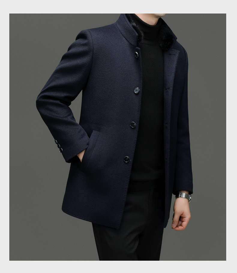 2023冬新款男士双面呢外套 保暖羽绒内胆毛领男大衣一件代发AM313