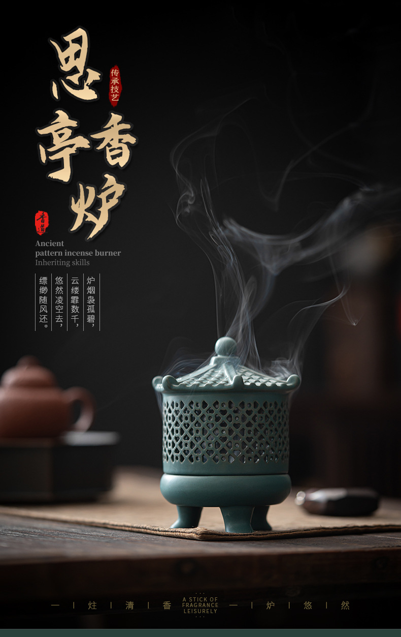 古塔香炉 陶瓷工艺品熏香摆件倒流香薰炉创意家居香插香道代发