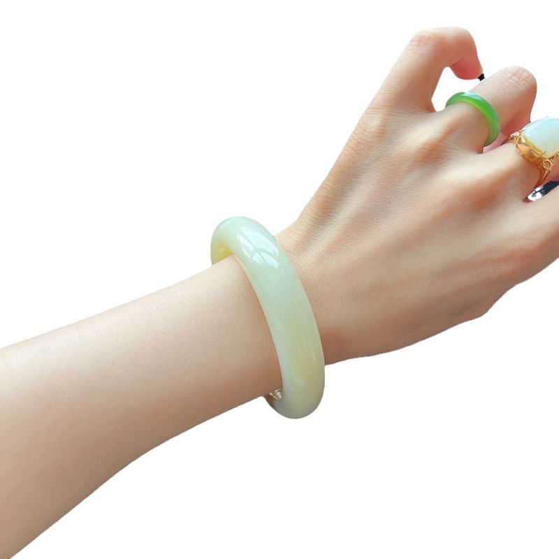 天然新疆且末料和田白玉糖料俏色籽料羊脂玉糖白手镯
