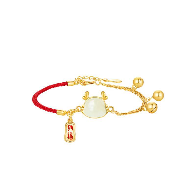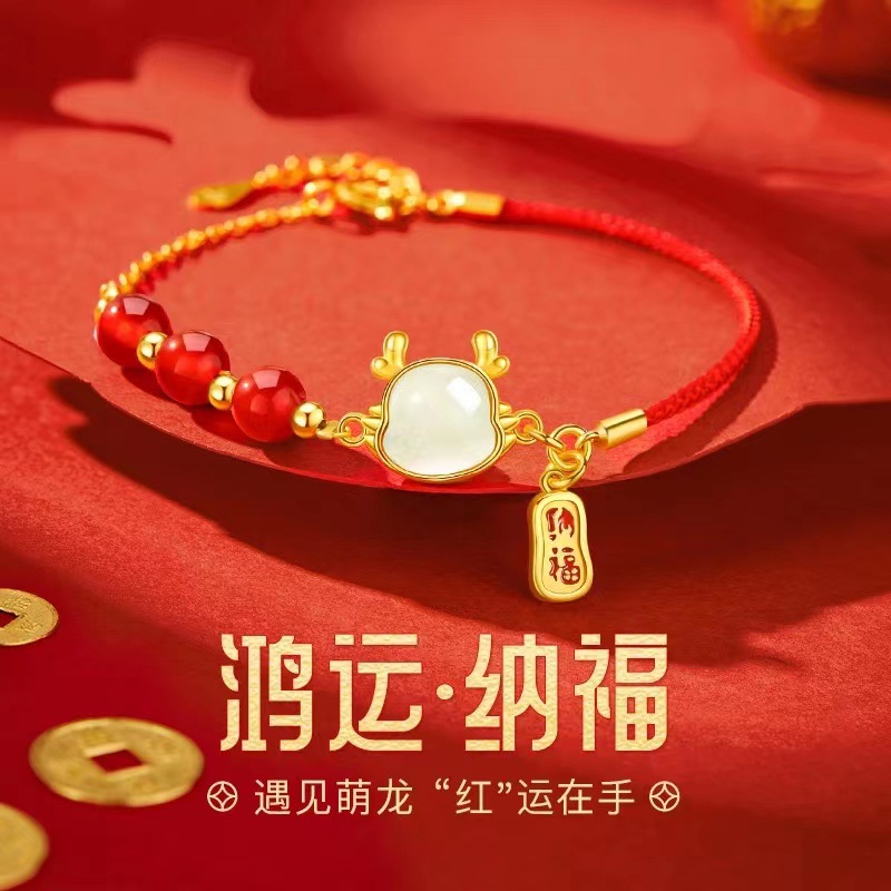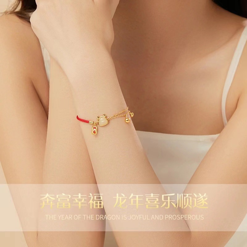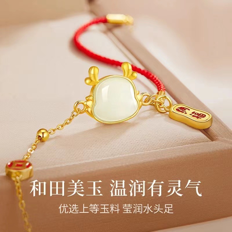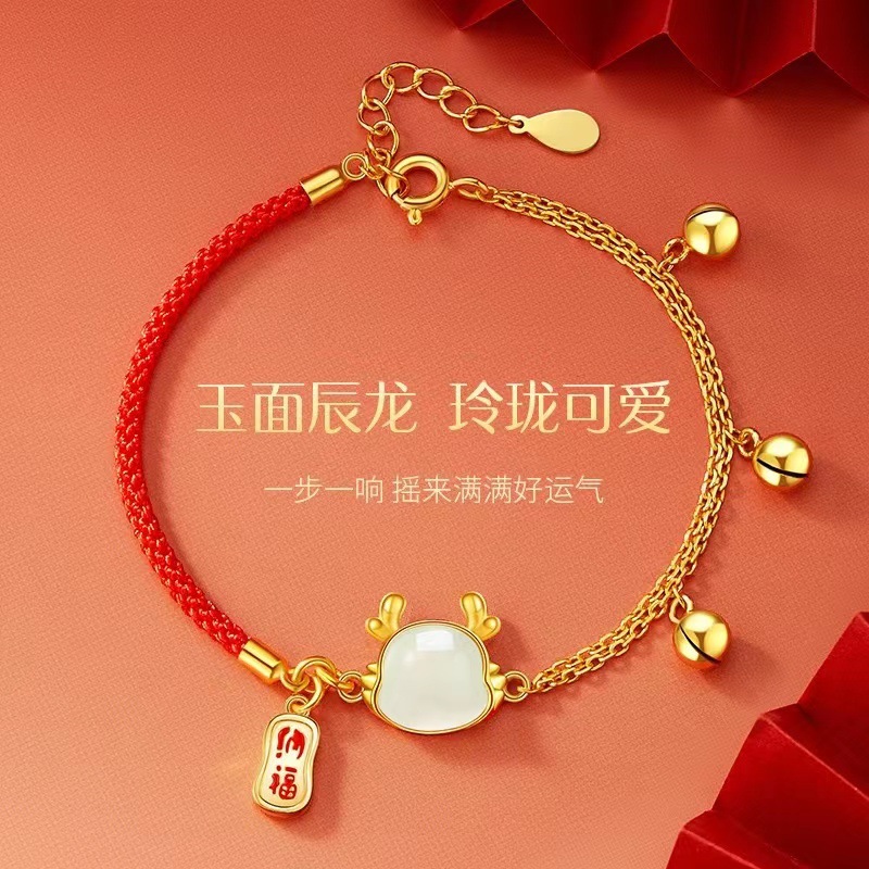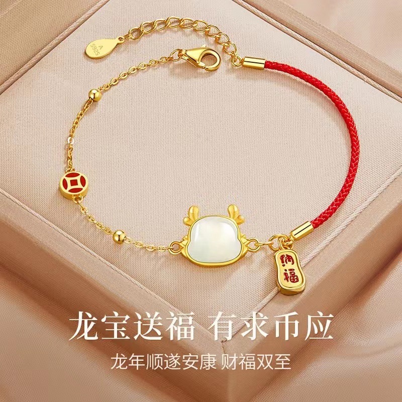 龙宝手链女仿白玉红绳手饰简约设计款复古气质红色编织绳