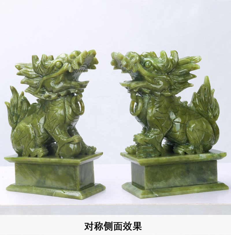 天然玉石麒麟一对玉器客厅家居饰品吉祥物玉雕工艺品摆件