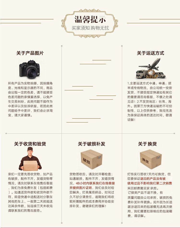 4、我们可以为买家提供在本店购买灯具的安装服务,但是需要买家自己出安装费用,产品出厂标价是不含安装费用,具体费用请咨询客服!