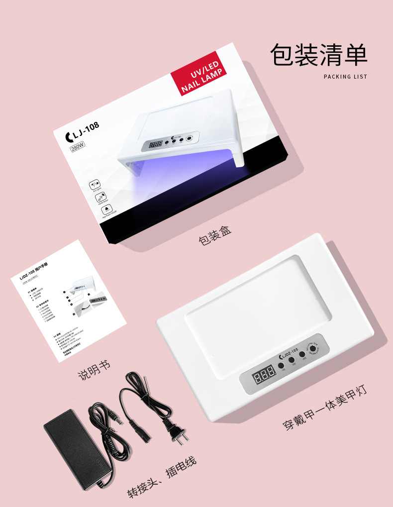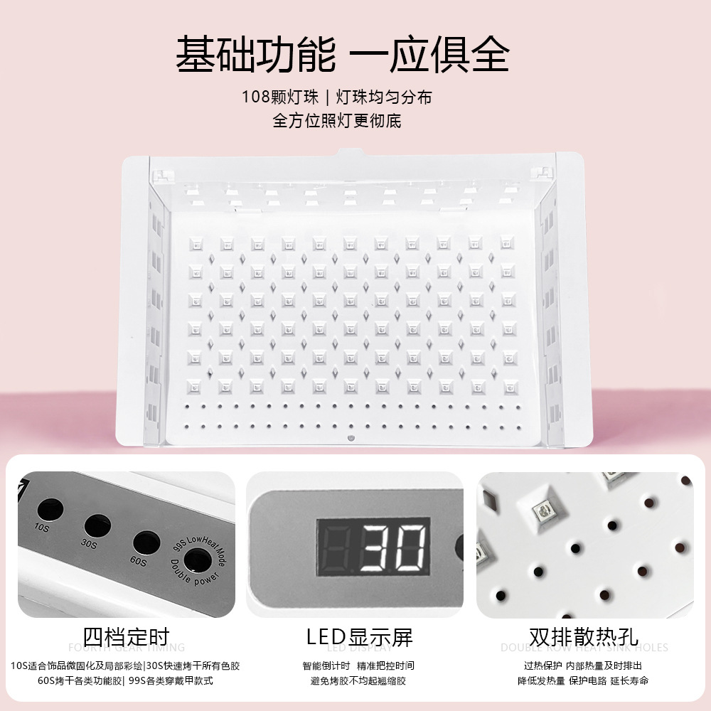 新款108穿戴甲美甲灯可长亮烤灯108灯速干光疗机穿戴甲工作室专用