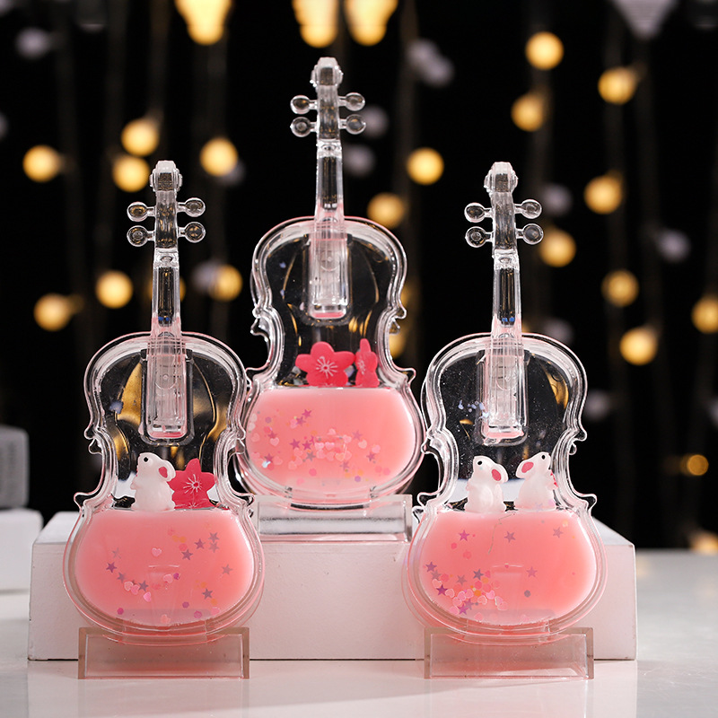 抖音网红大提琴造型漂浮沙漏摆件南瓜车创意油滴笔插液体流沙玩具