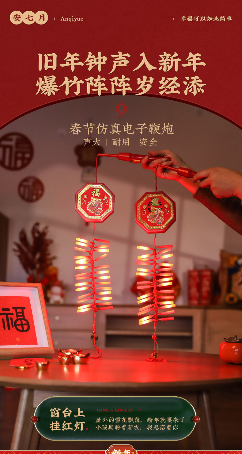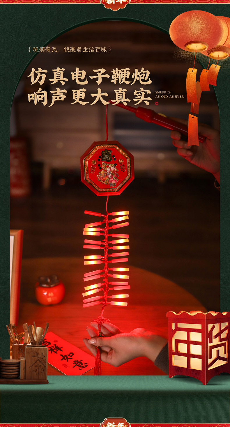 过年电子鞭炮春节烟火仿真礼炮新年装饰品小挂饰儿童手提炮仗爆竹
