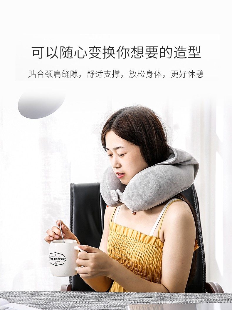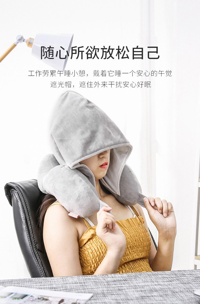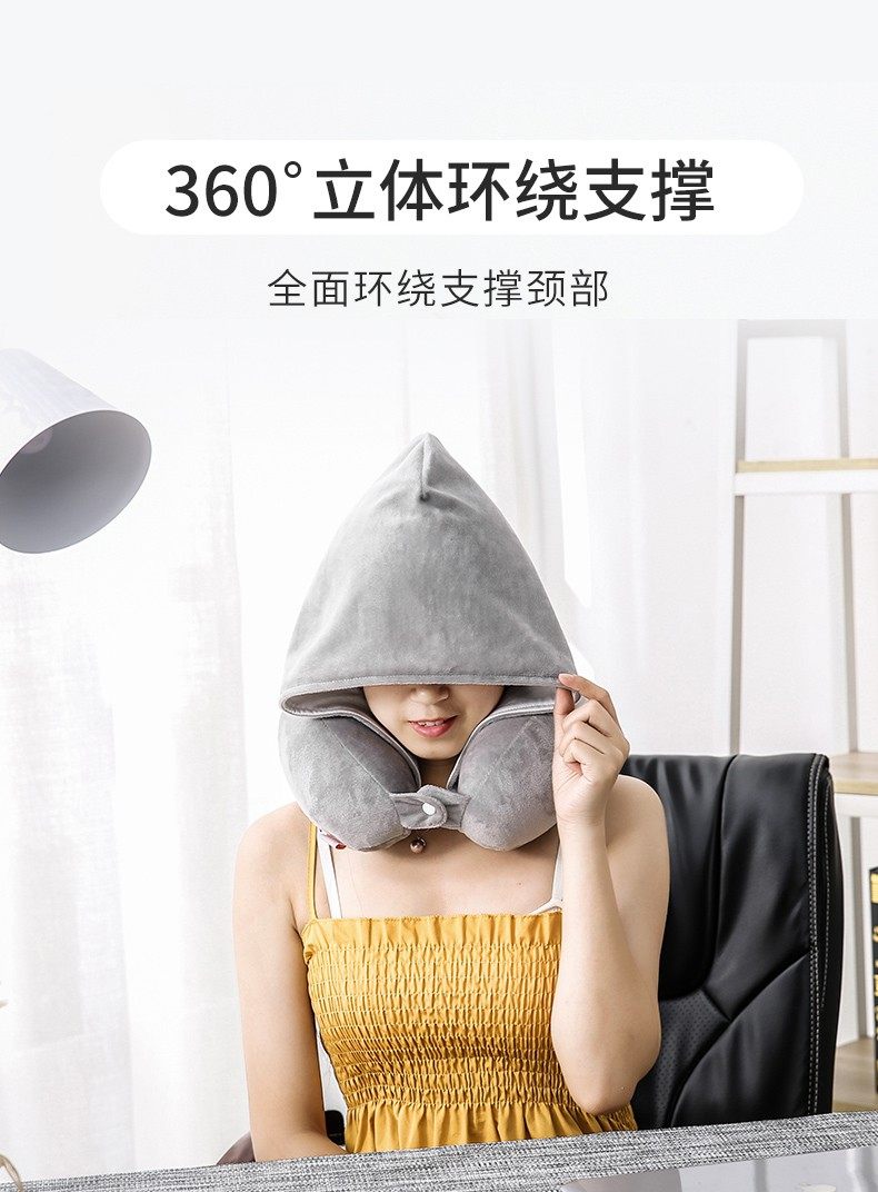 U型枕 连帽脖枕颈枕形靠枕护颈旅行办公室睡觉遮光飞机枕头护脖子