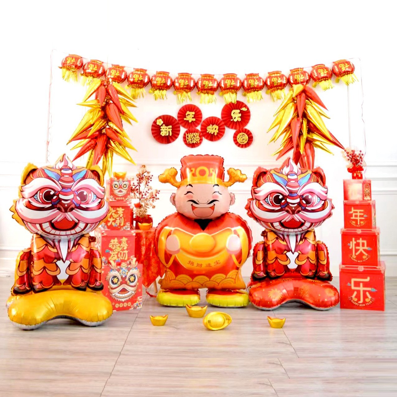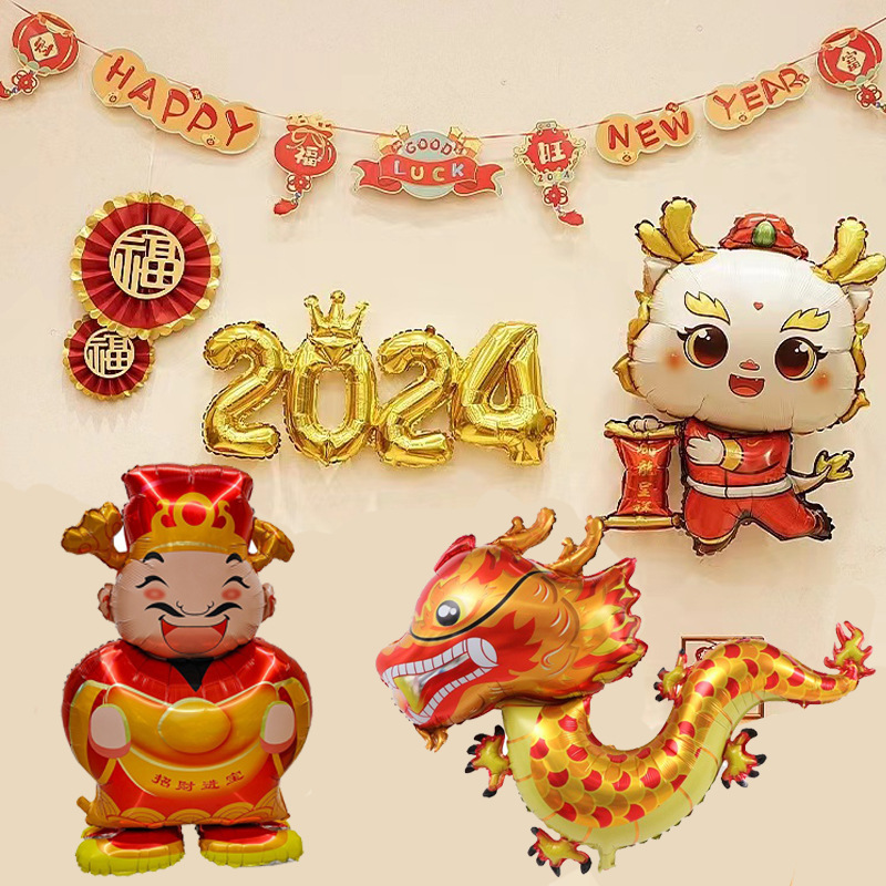 2024年新款龙年中国龙造型铝膜气球新年春节财神爷醒狮装饰气球