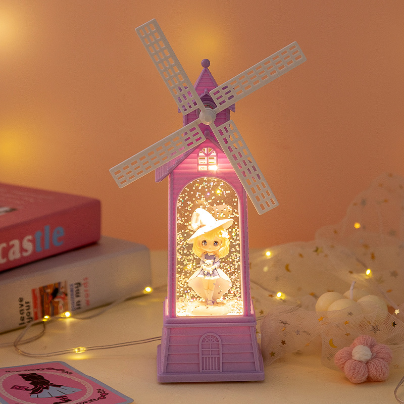 外贸专供创意风车音乐盒八音盒LED发光水晶灯情人节朋友闺蜜