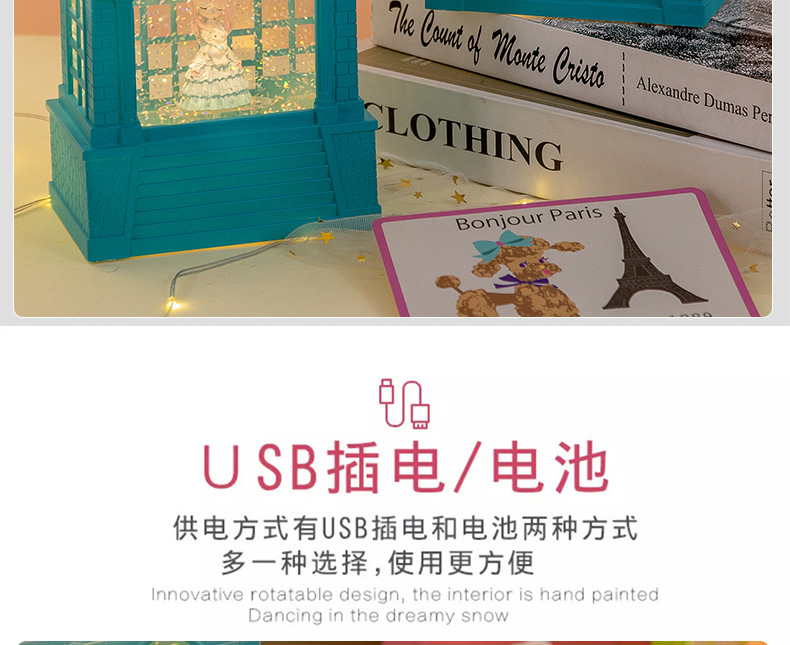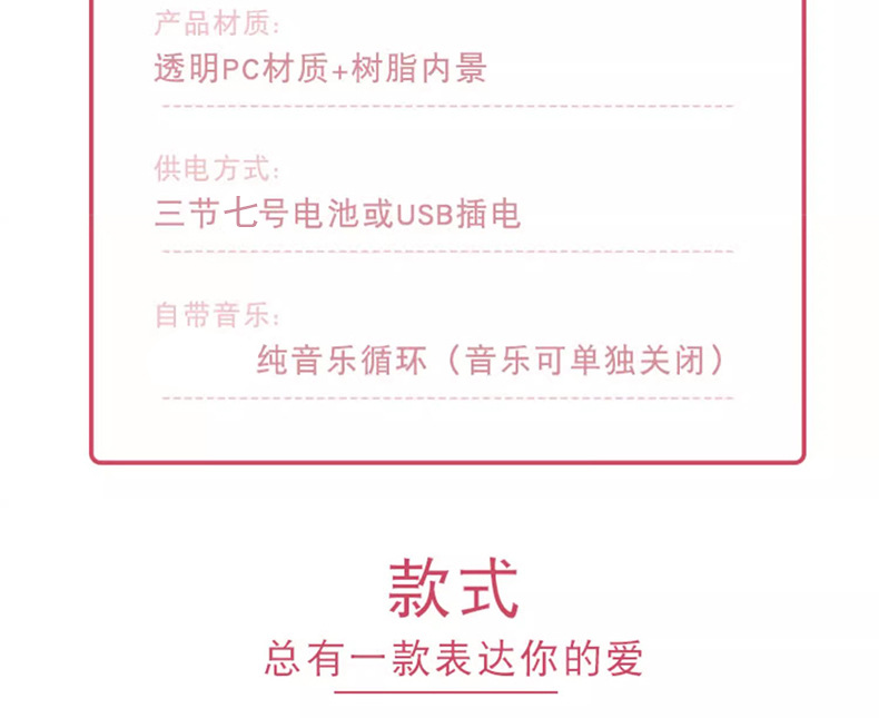 外贸专供音乐盒八音盒LED发光水晶灯情人节朋友闺蜜