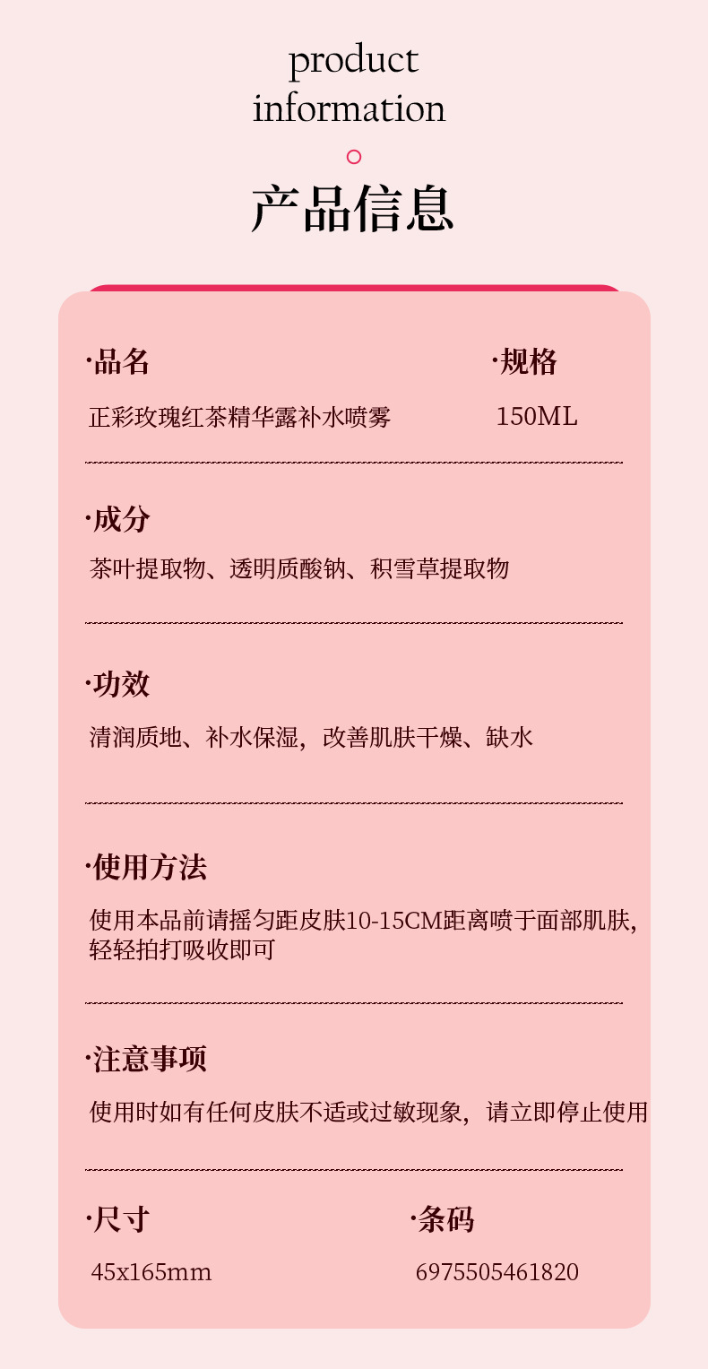玫瑰红茶精华露补水喷雾化妆水补水保湿滋润玻尿酸爽肤水厂家批发