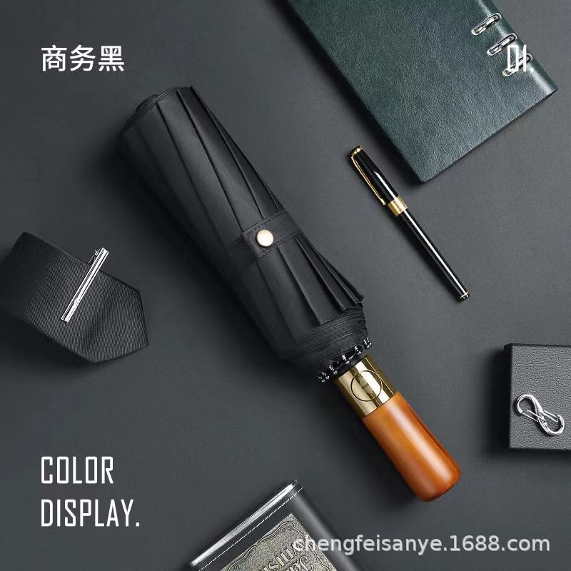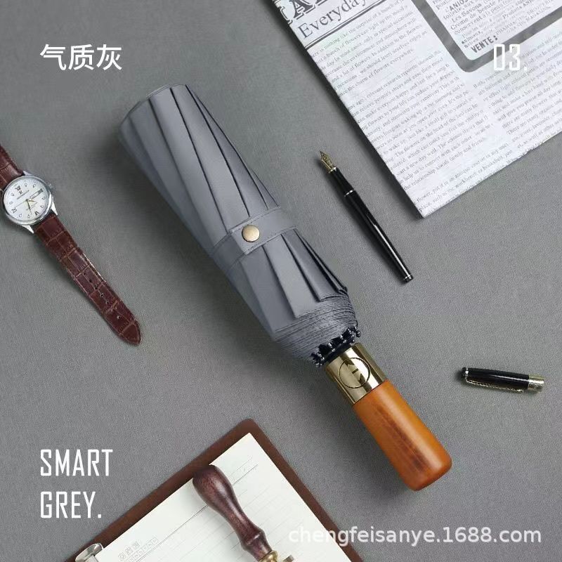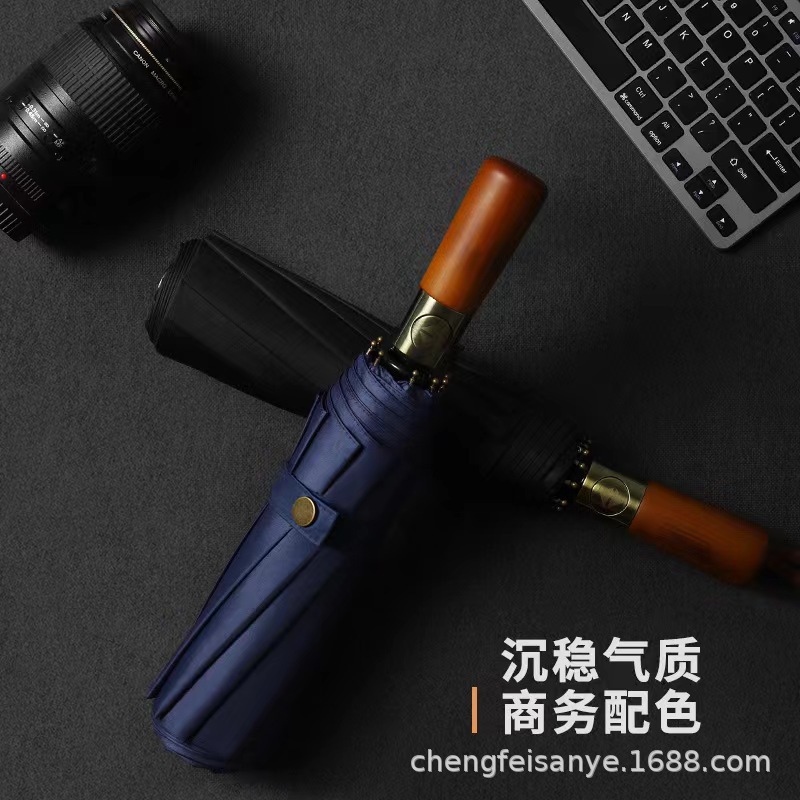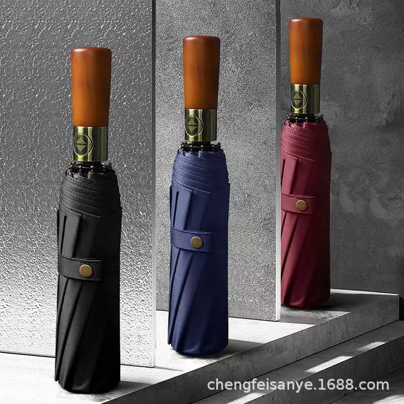 全自动折叠伞十骨防晒防紫外线晴雨伞商务送礼复古木柄广告伞批发