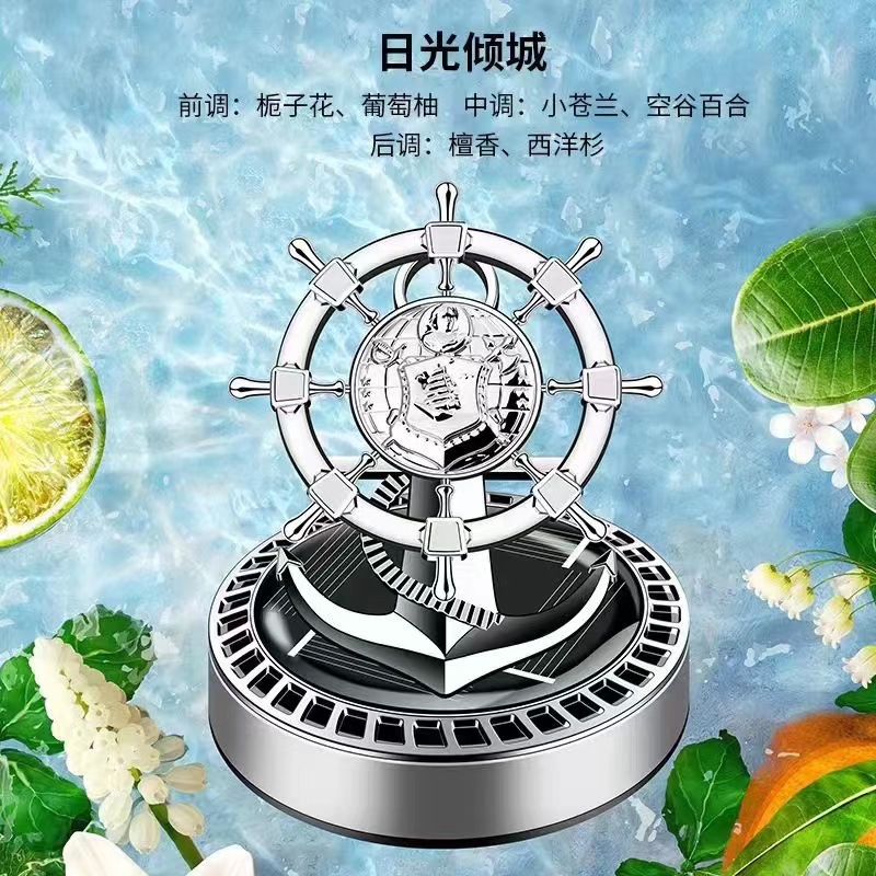 新款汽车香水座车载香水座式创意舵手时来运转船舵车载香薰太阳能