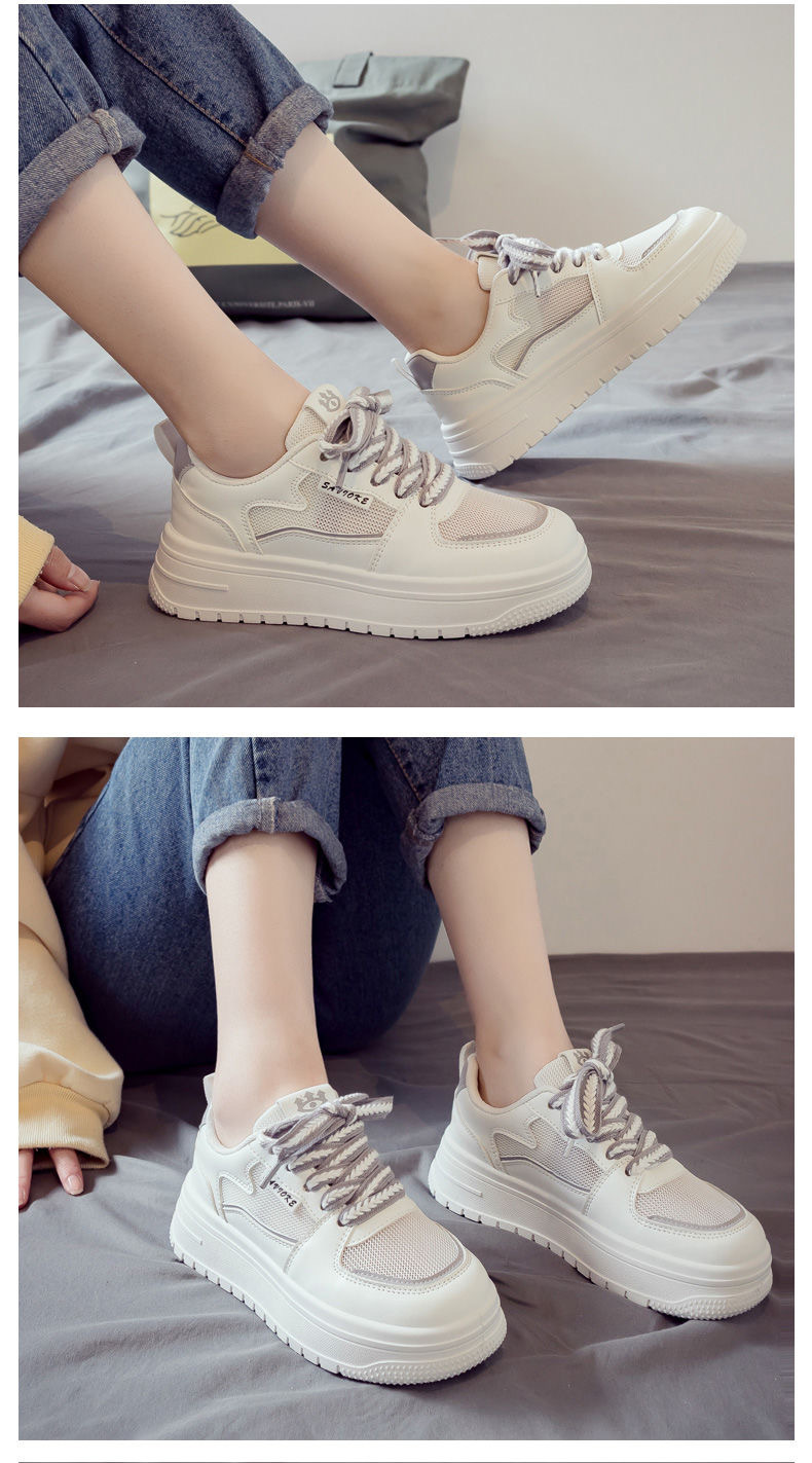 夏季透气小白鞋女鞋2023年新款百搭厚底休闲运动板鞋网面镂空网鞋