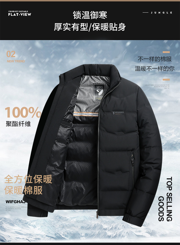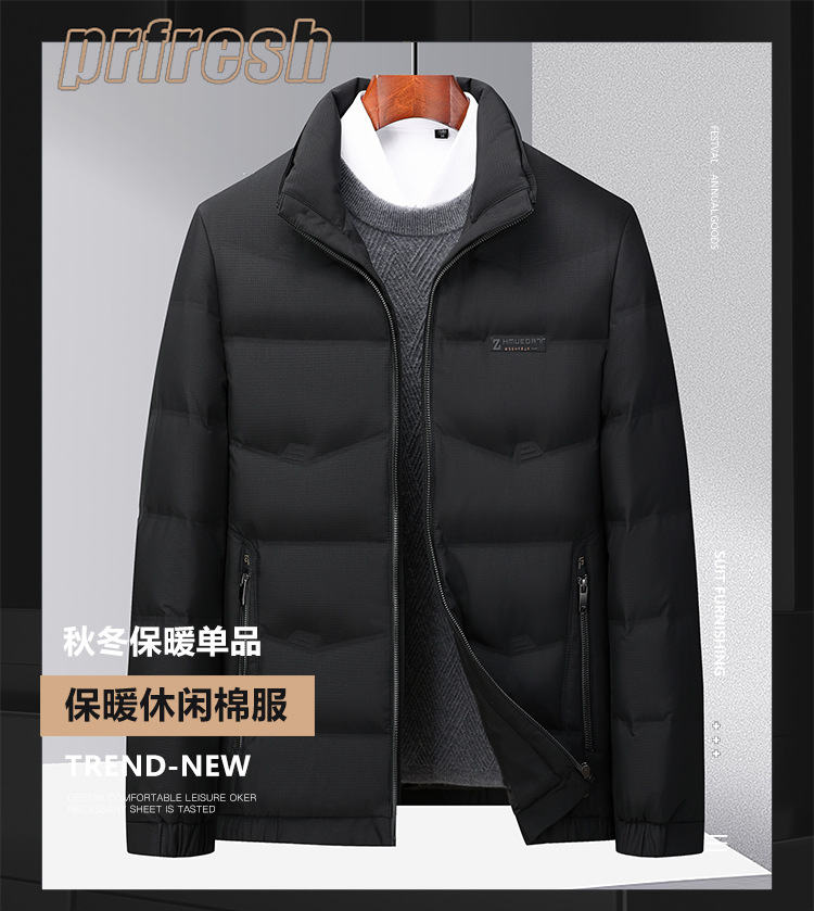 中年男士棉服轻商务立领外套中老年加厚保暖棉衣冬季新款爸爸男装