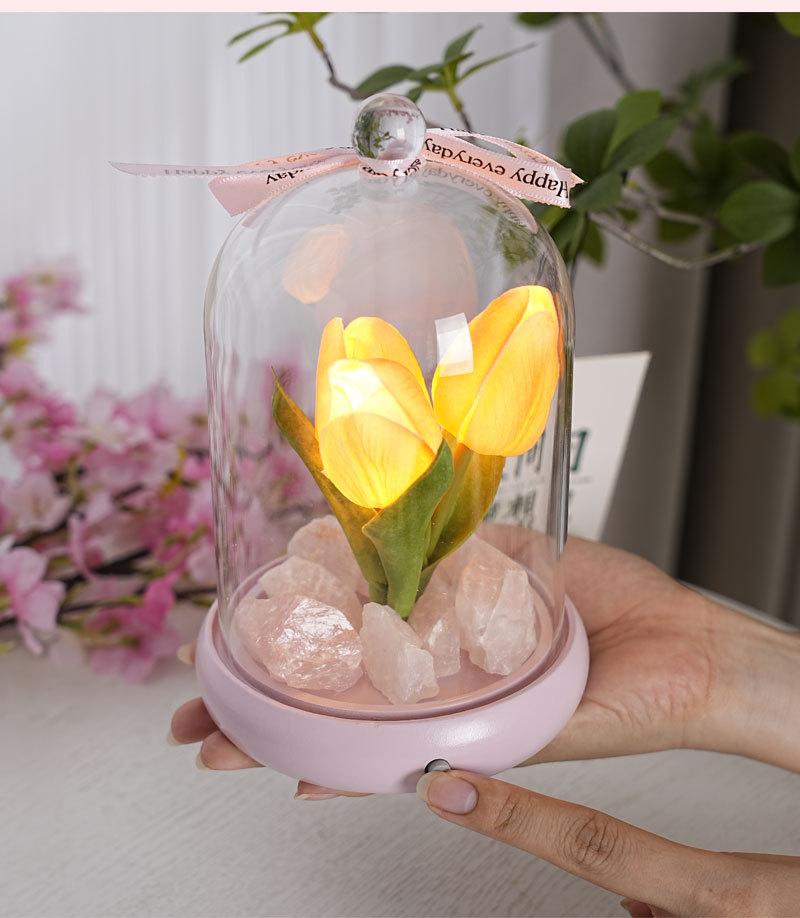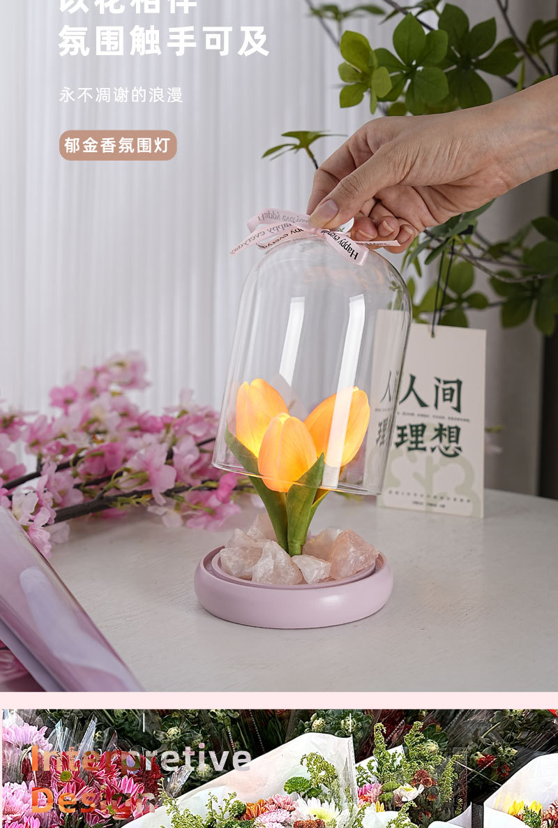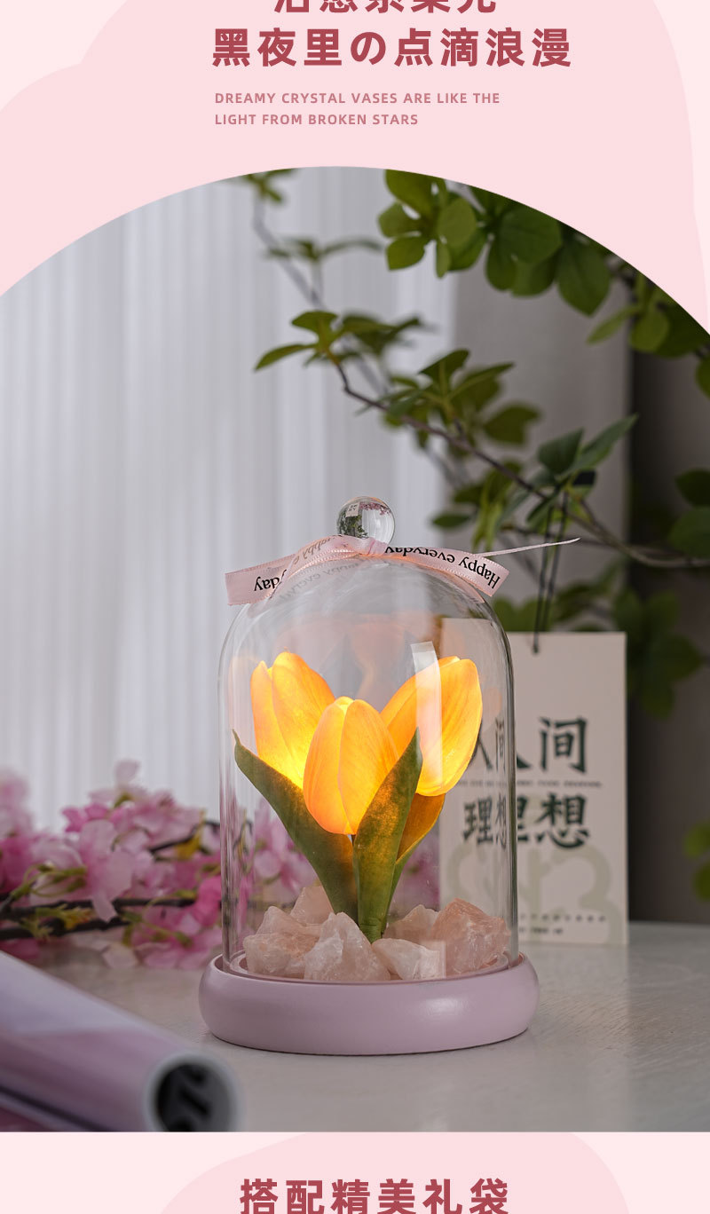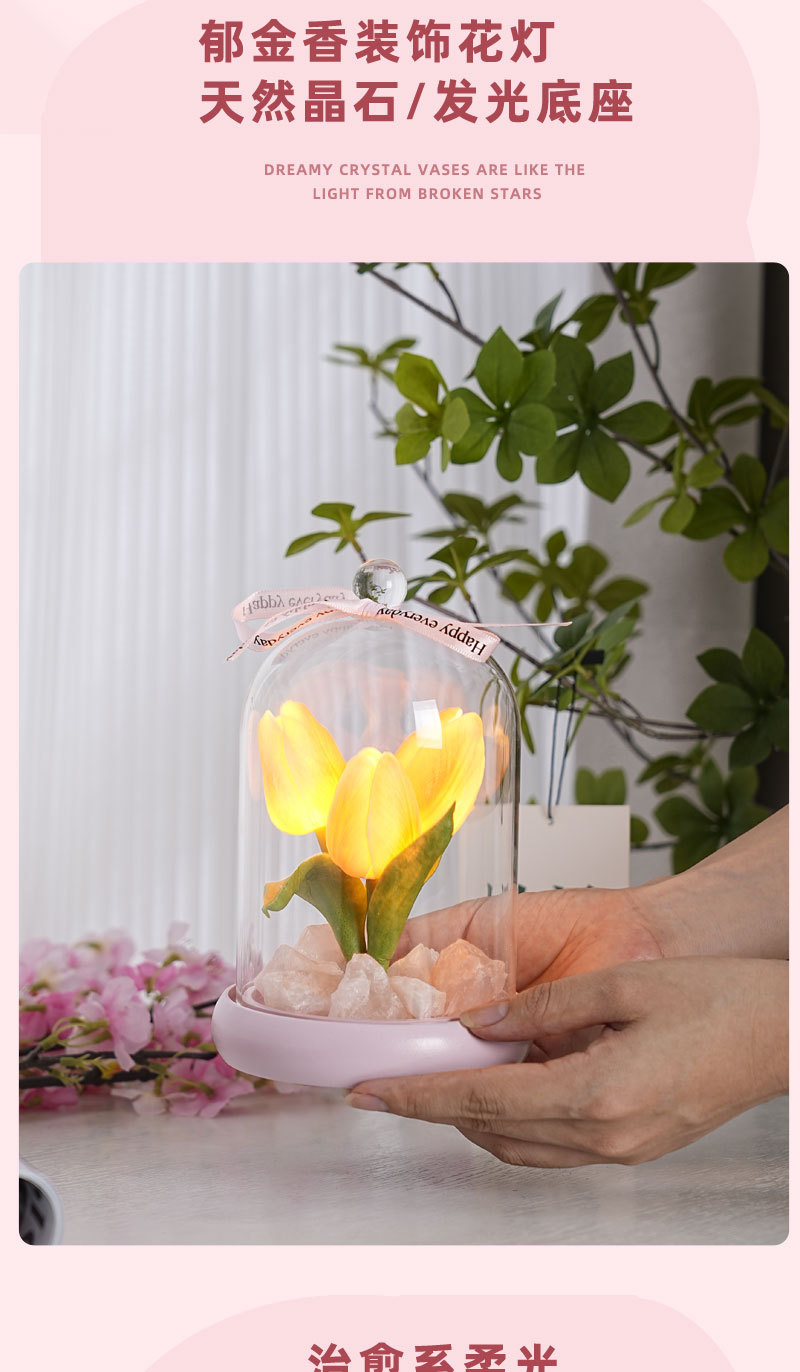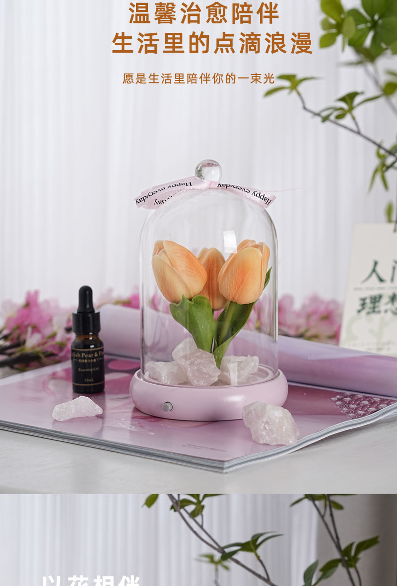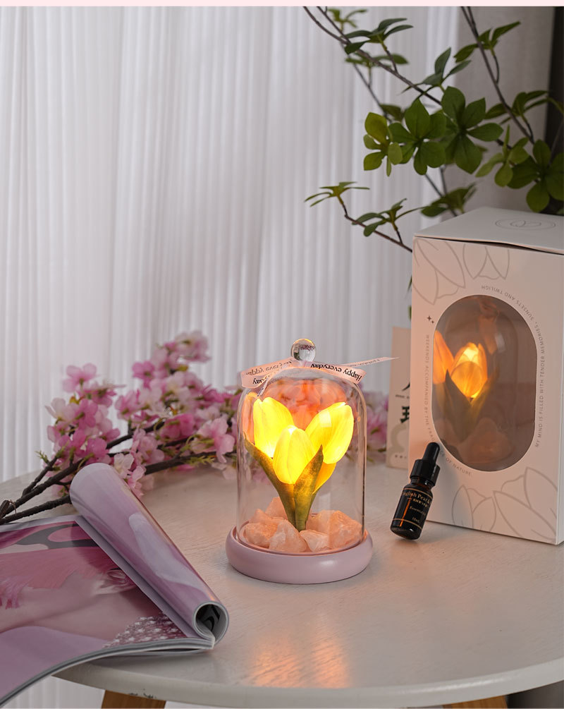 外贸专供郁金香晶石香薰电池夜灯小众卧室家用花束摆件可爱小礼物