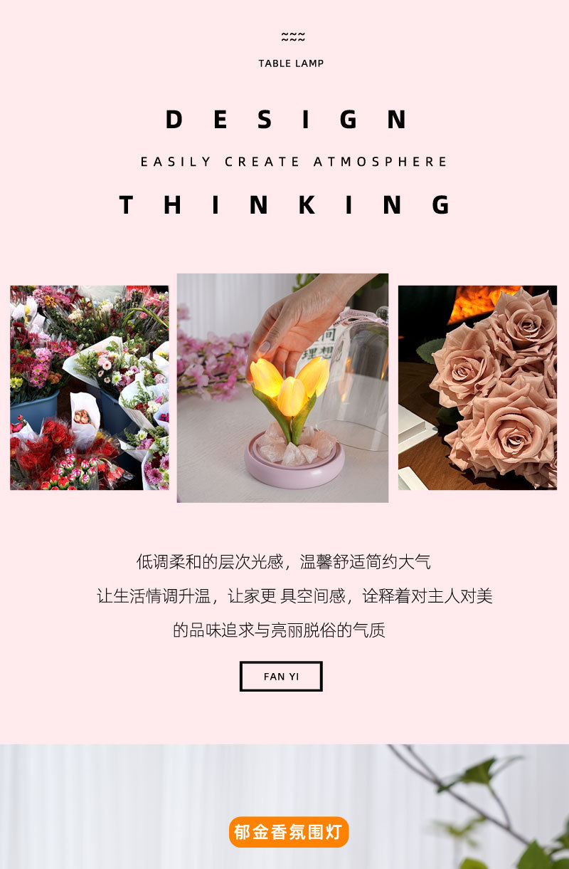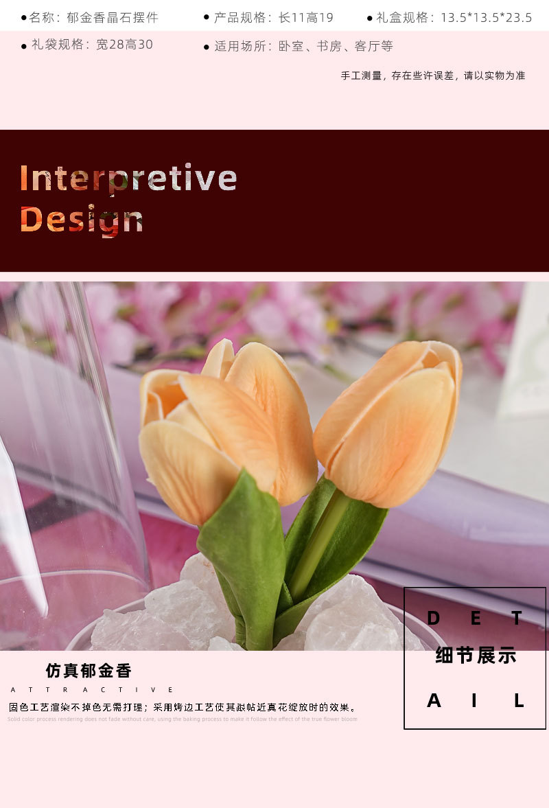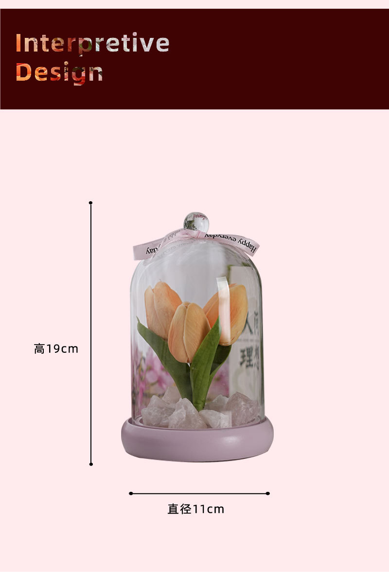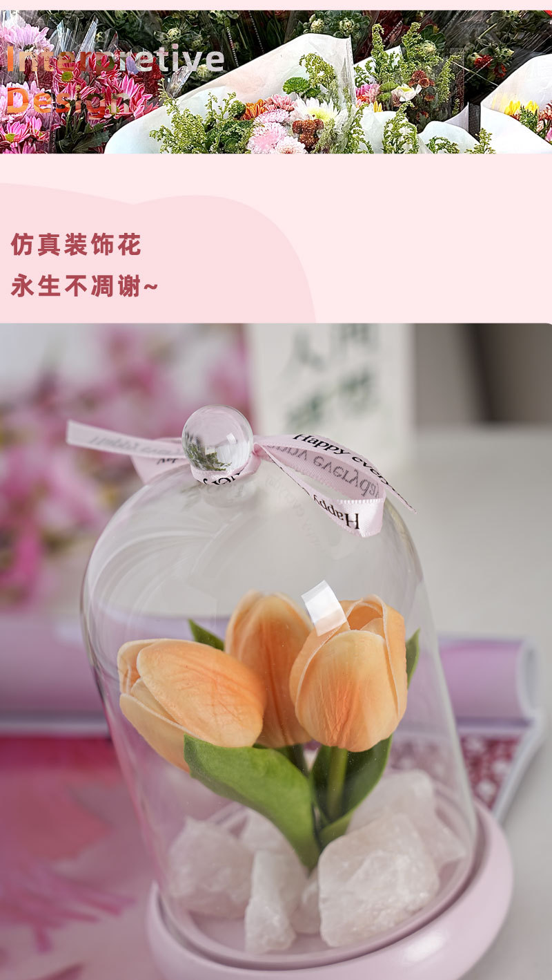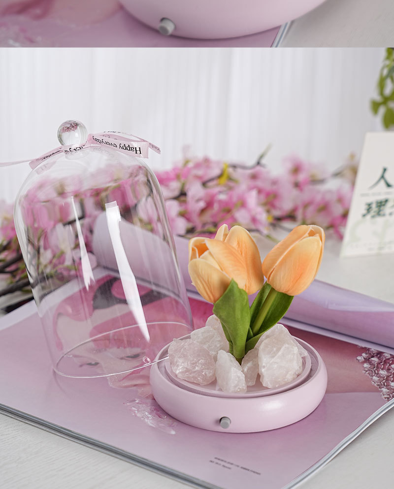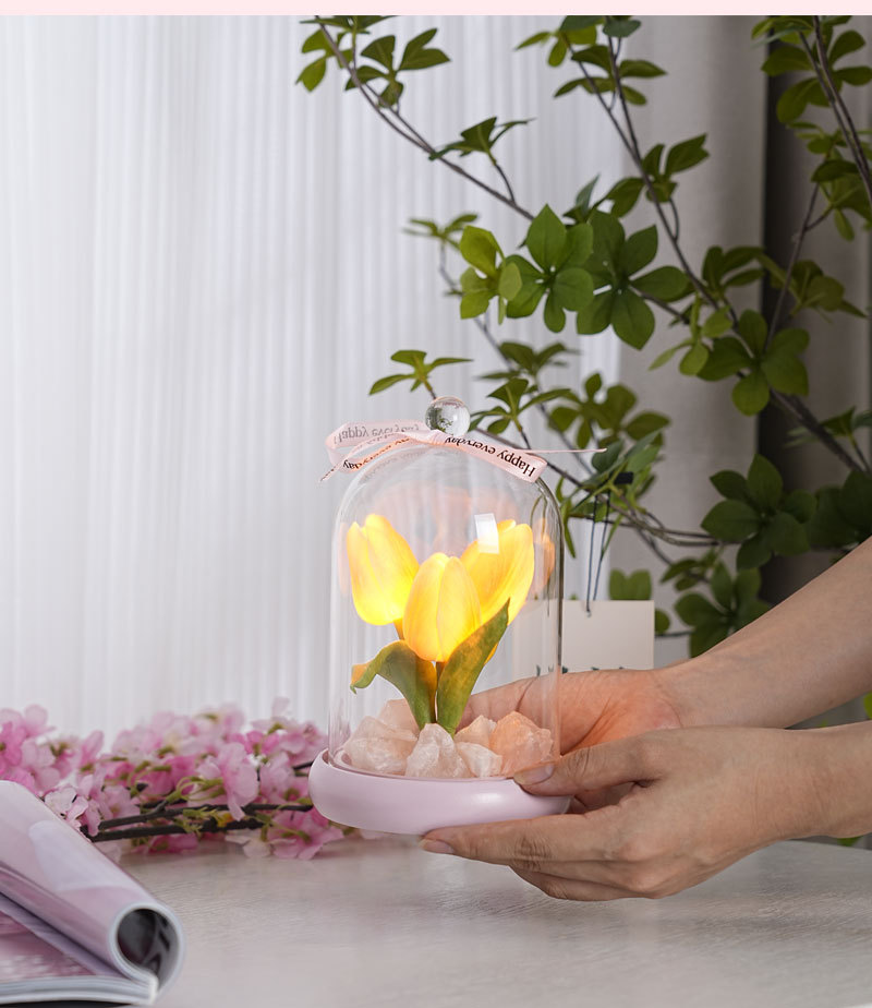 外贸专供郁金香晶石香薰电池夜灯小众卧室家用花束摆件可爱小礼物